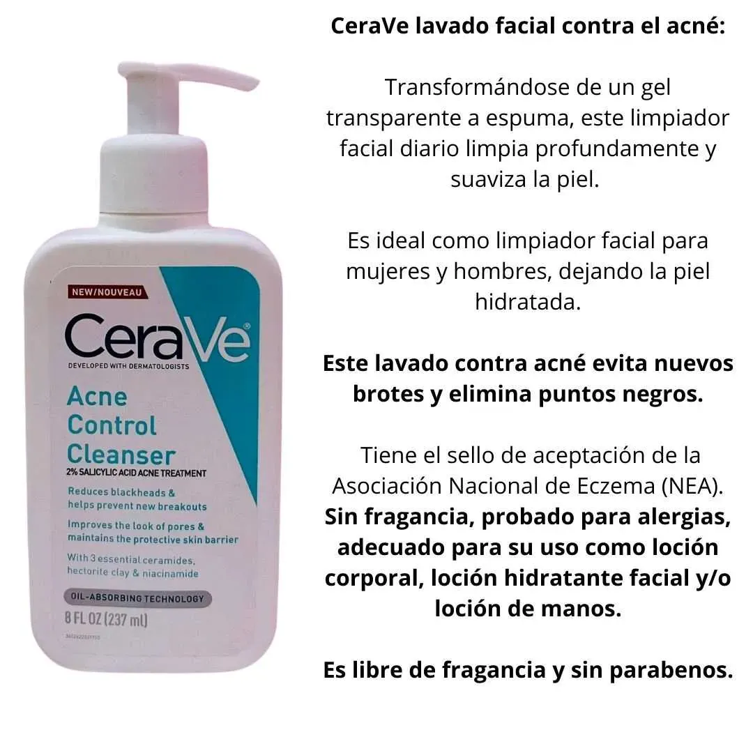 El Limpiador Facial Cerave para Control de Acné es la solución perfecta para combatir el acné y cuidar tu piel. Con la calidad de Cerave, este tratamiento facial te ayudará a mantener una piel saludable y libre de imperfecciones. ¡Dale a tu piel el cuidado que se merece con Cerave!