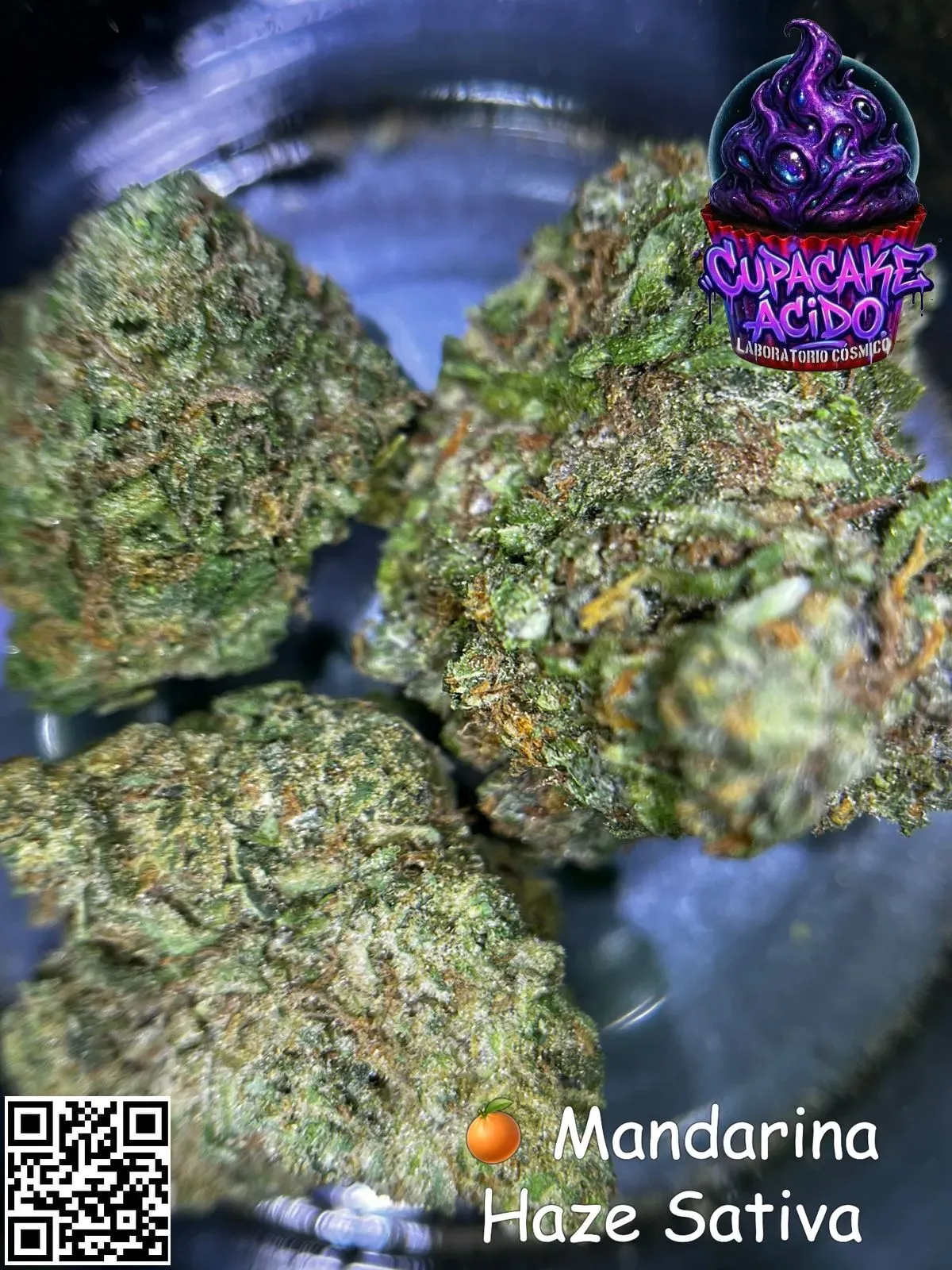 Esta sativa no entra, irrumpe bailando. Mandarina Haze es buen humor en chicle cítrico: energía, verbo suelto y actitud de “vamos por chelas y respuestas cósmicas”.