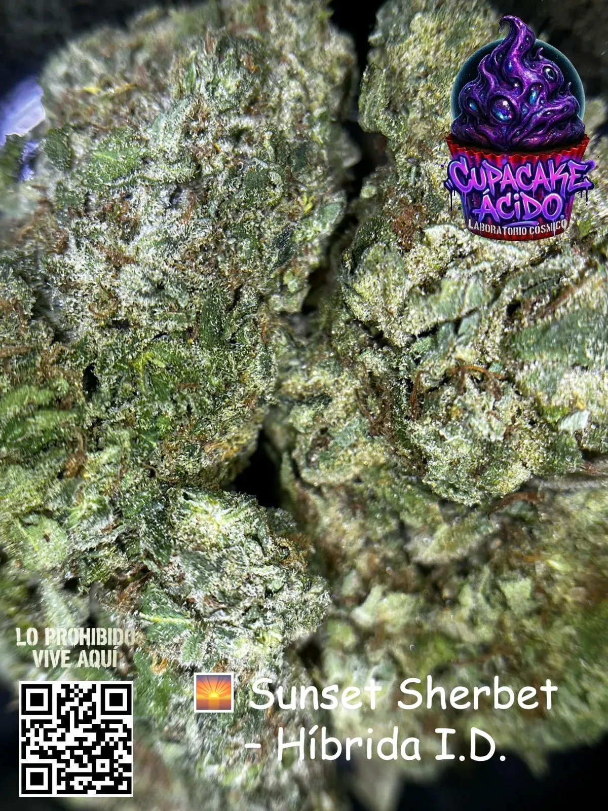 Sunset Sherbet es como ese momento en que el sol se está escondiendo y todo se siente más tranquilo. No te empuja ni te tumba, te acomoda. Es híbrida equilibrada, suave al inicio y relajante al final.