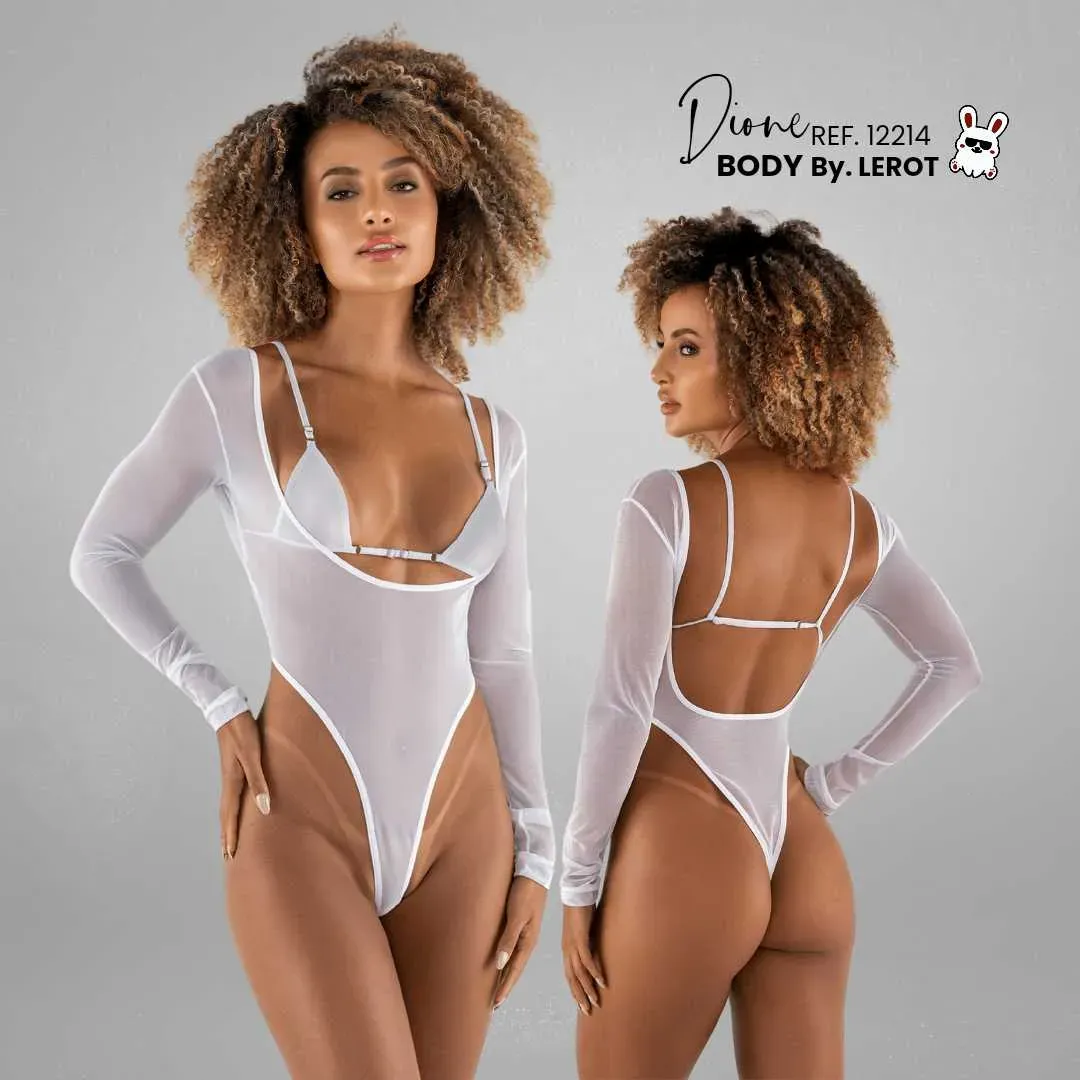 El conjunto Dione, elaborado en delicada malla blanca translúcida, es la fusión perfecta entre elegancia y comodidad, ideal para tus shows más sofisticados y sensuales.