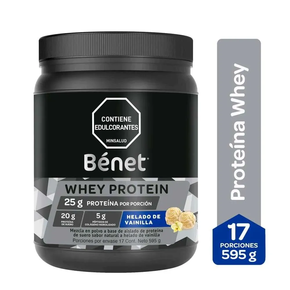 La Bénet Whey Protein es un suplemento en polvo a base de aislado de proteína de suero, diseñado para apoyar la nutrición deportiva y la recuperación muscular. Cada porción aporta 25 g de proteína, de los cuales 20 g provienen del suero de leche y 5 g de péptidos de colágeno hidrolizado, lo que cont...