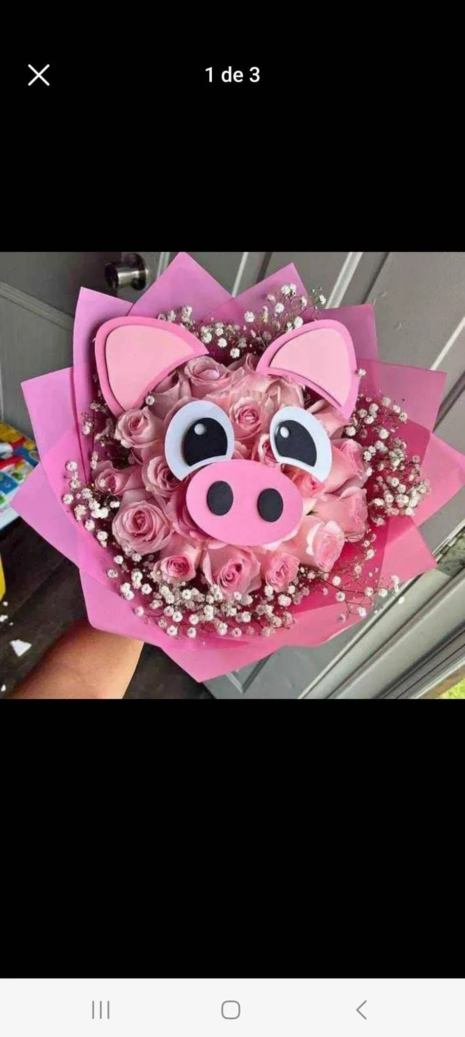 Agregue un toque de fantasía a sus arreglos florales con este adorable ramo con rosas rosadas y delicado aliento de bebé artísticamente arreglado en forma de un encantador cerdo rosa. Perfecto para regalar o alegrar cualquier espacio con su diseño único y lúdico.