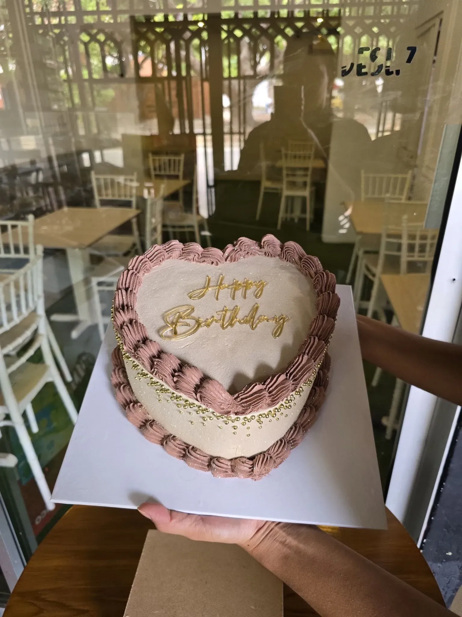 Celebra un cumpleaños especial con el delicioso pastel Tendencia Corazón. Con forma de corazón y decorado con la frase 'Feliz Cumpleaños', es perfecto para cualquier celebración dulce. Sorprende a tus seres queridos con este exquisito postre que llenará de alegría y sabor tu fiesta.