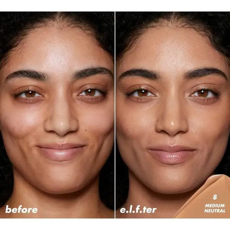 Dile "Halo" al Halo Glow Skin Tint de Elf, un producto multiusos que vale cada centavo. Consigue una cobertura ligera y modulable con un acabado radiante y protector solar mineral de óxido de zinc FPS 50 sin efecto blanquecino. Se absorbe como tu producto de cuidado facial favorito, dejando una sens...