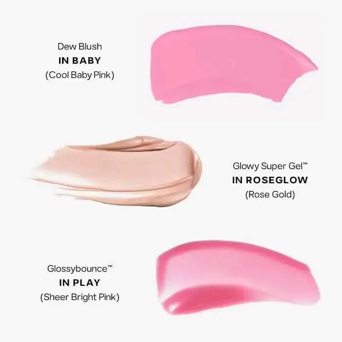 Qué es: Un kit con los productos esenciales más vendidos de SaieGlow™: un mini iluminador ligero, un rubor líquido en crema de tamaño completo y un brillo labial hidratante en aceite.
