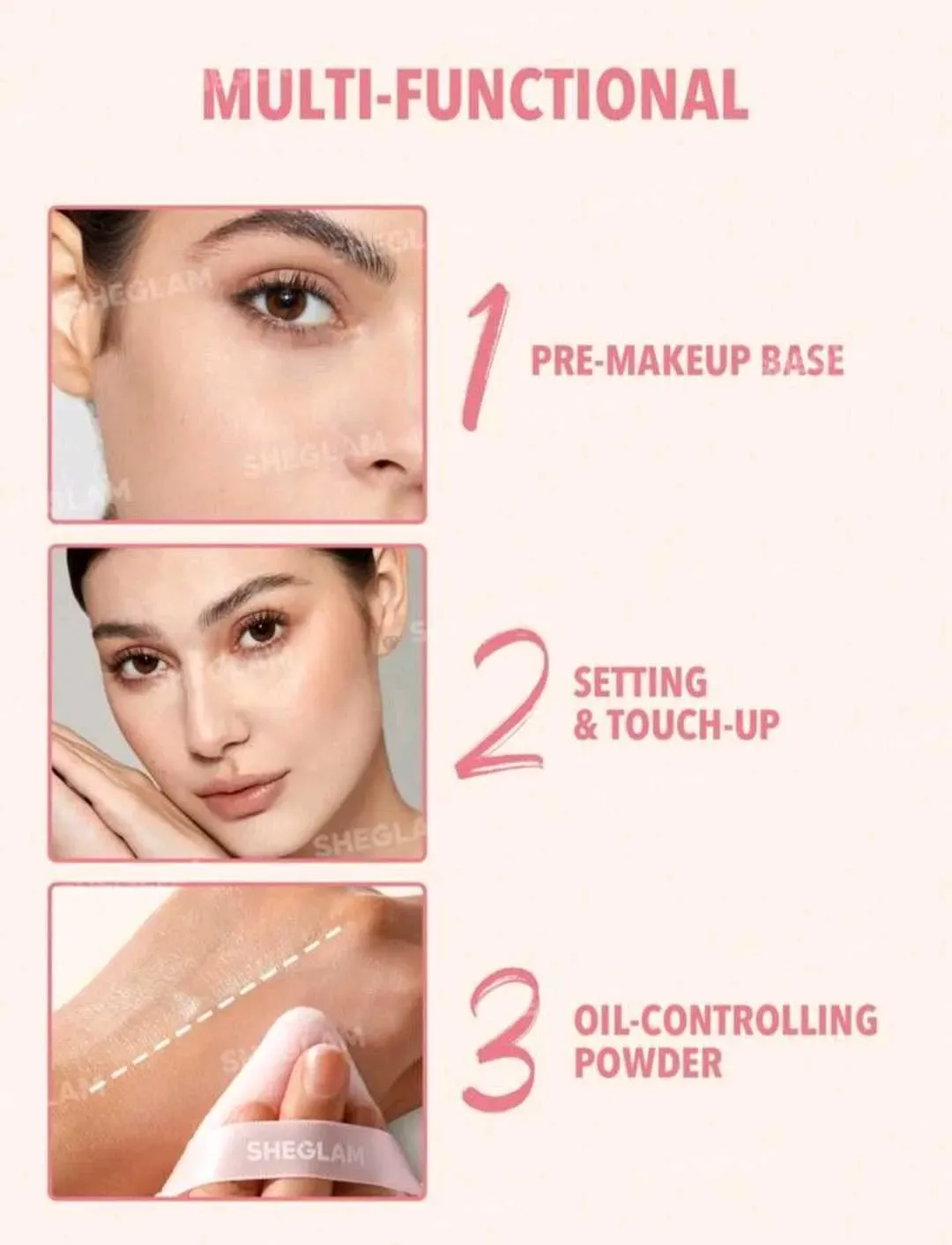 Además, elimina el brillo no deseado de la base, al tiempo que hidrata la piel para conseguir un acabado perfecto.