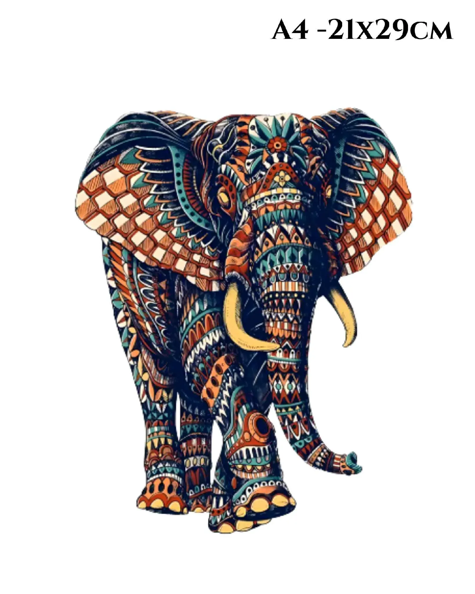 Elefante Tribal , Rompecabezas de Madera tamaño A4 21x29cm aproximadamente