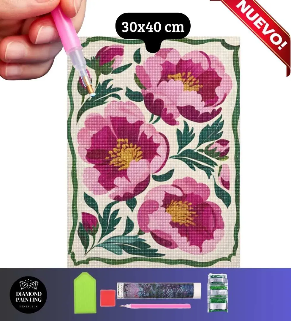 Flores Hobo Chic 30x40cm - Kit Diamond Painting Estandar - Diamantes Redondos en Acrilico - Precio Euro BCV