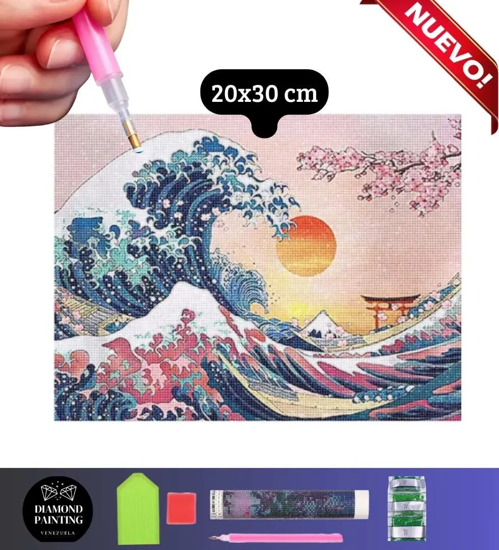 La Ola De Kanagawa Pop - 20x30cm - Kit Diamond Painting Estandar - Diamantes Redondos en Acrilico - Precio Euro BCV