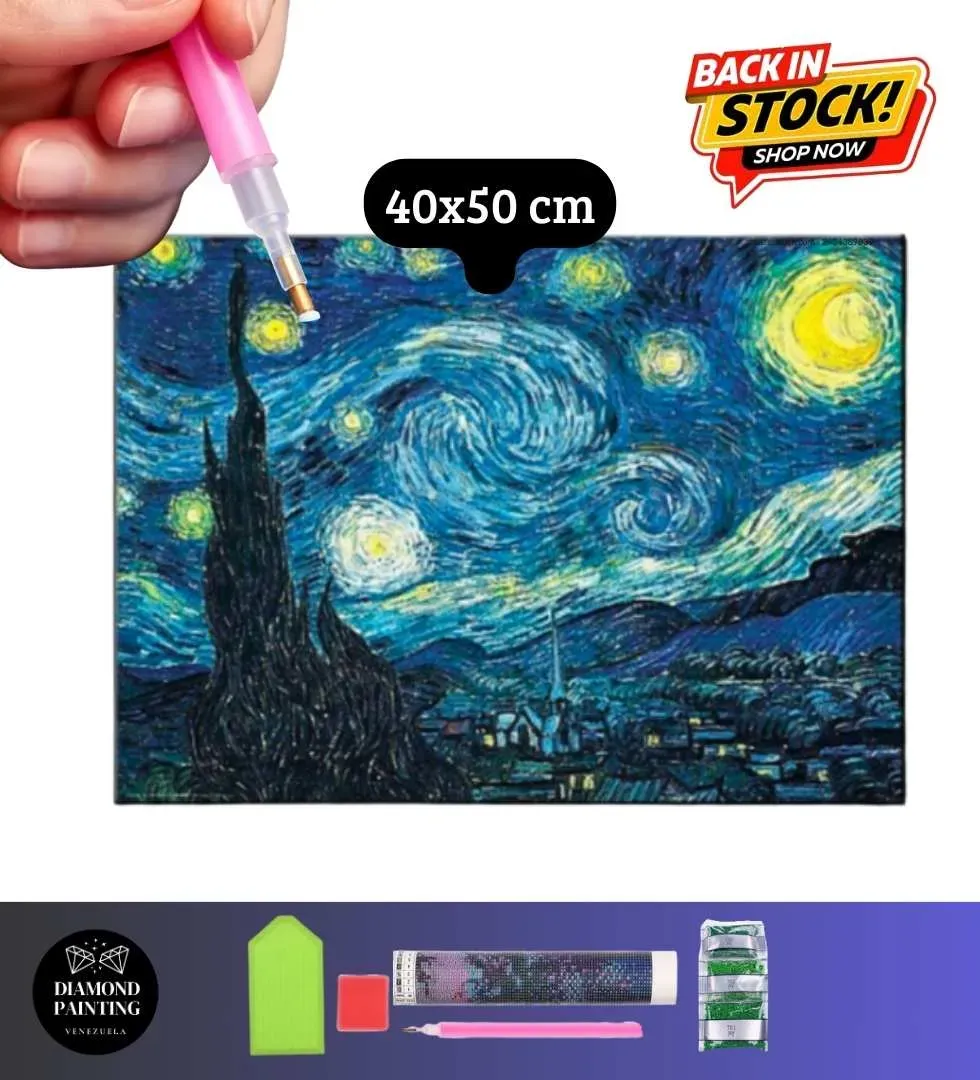 Van Gogh 🎨 La Noche Estrellada - 40x50cm - Kit Diamond Painting Estandar - Diamantes Redondos en Acrilico - Precio Euro BCV