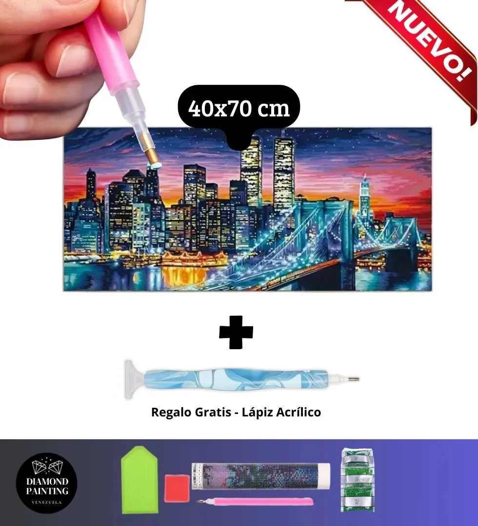 XL Vista Panoramica New York 40x70cm +🎁 Lapiz Acrilico de Regalo - Kit Diamond Painting Estandar - Diamantes Redondos en Acrilico - Precio Euro BCV