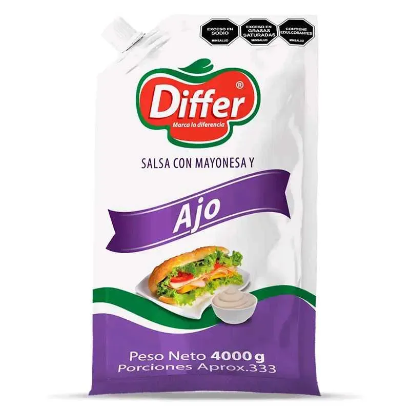 Disfruta del delicioso sabor de la Salsa de Ajo Differ en su presentación de 4.000 gramos. Perfecta para darle un toque especial a tus comidas favoritas. El complemento ideal para realzar el sabor de tus platos. ¡Haz que cada bocado sea una experiencia única!