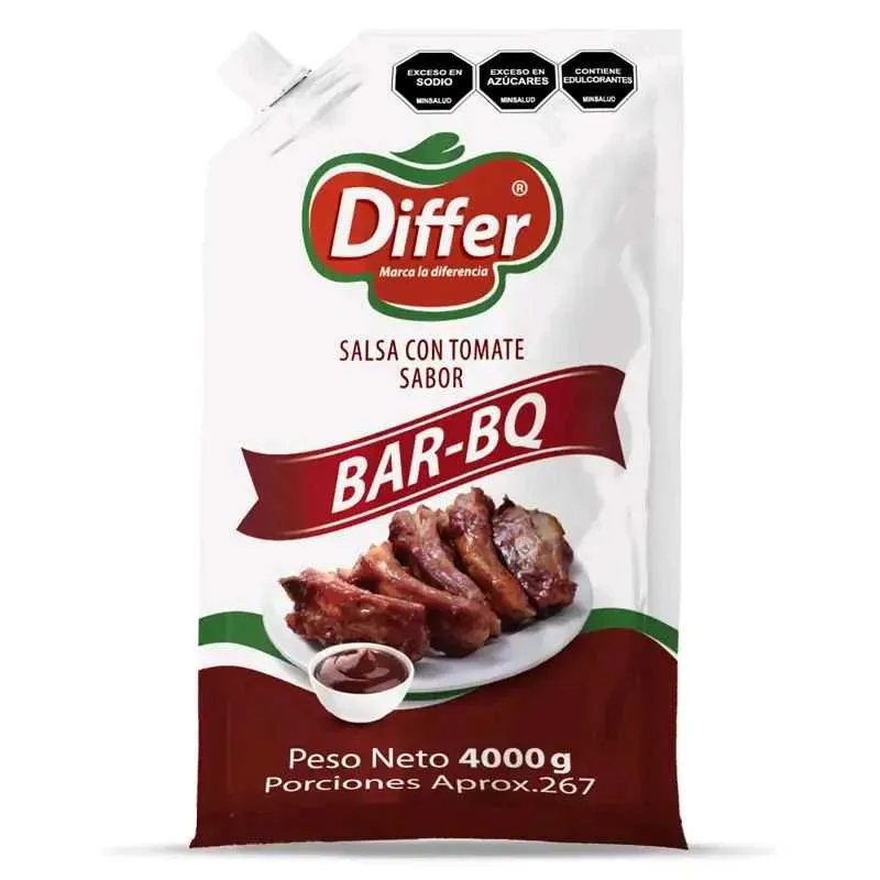 Disfruta de la deliciosa Salsa BBQ Differ en un práctico envase de 4.000 gramos. Perfecta para darle un toque especial a tus comidas y barbacoas. ¡Sabor auténtico que deleitará a toda la familia!