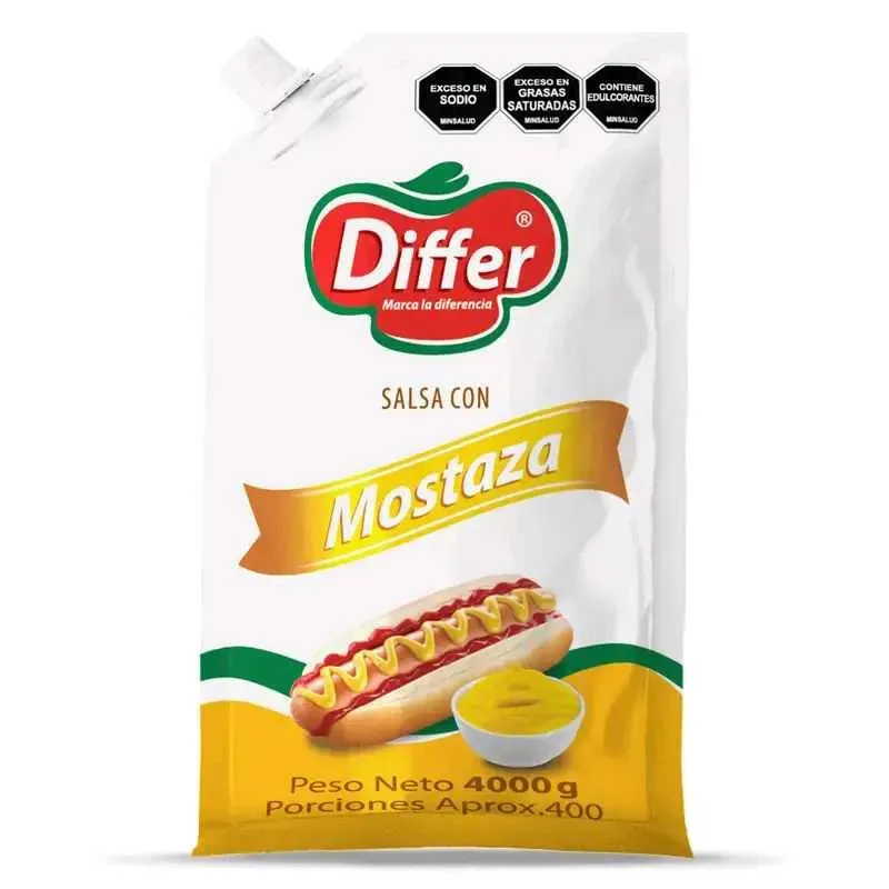 Disfruta de la deliciosa Salsa con Mostaza Differ en un práctico envase de 4.000 gramos. Ideal para darle un toque especial a tus comidas favoritas. Atrévete a probar su sabor único y sorprende a tu paladar. ¡No puede faltar en tu cocina!