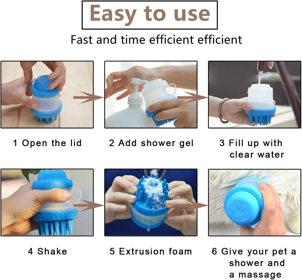 Con este cepillo es mucho más fácil de bañar tu mascota en casa, es cuestión de aplicar el shampoo en el dispensador y masajear dura un rico y agradable baño.