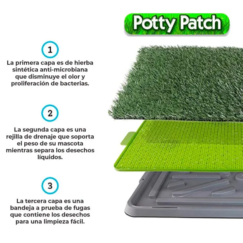Construcción de 3 capas , capa superior hierba sintética, capa de drenaje en la bandeja intermedia y capa de recogida en la parte inferior.
