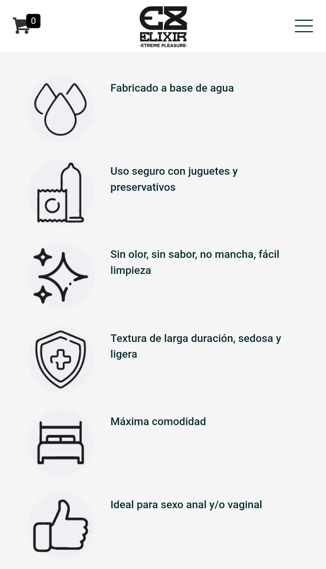 El Lubricante Íntimo Híbrido Elixir es un producto elaborado a base de agua y silicona cuyo fin es proporcionar una lubricación de larga duración en la zona íntima para el uso prolongado en relaciones sexuales o shows de larga duración.