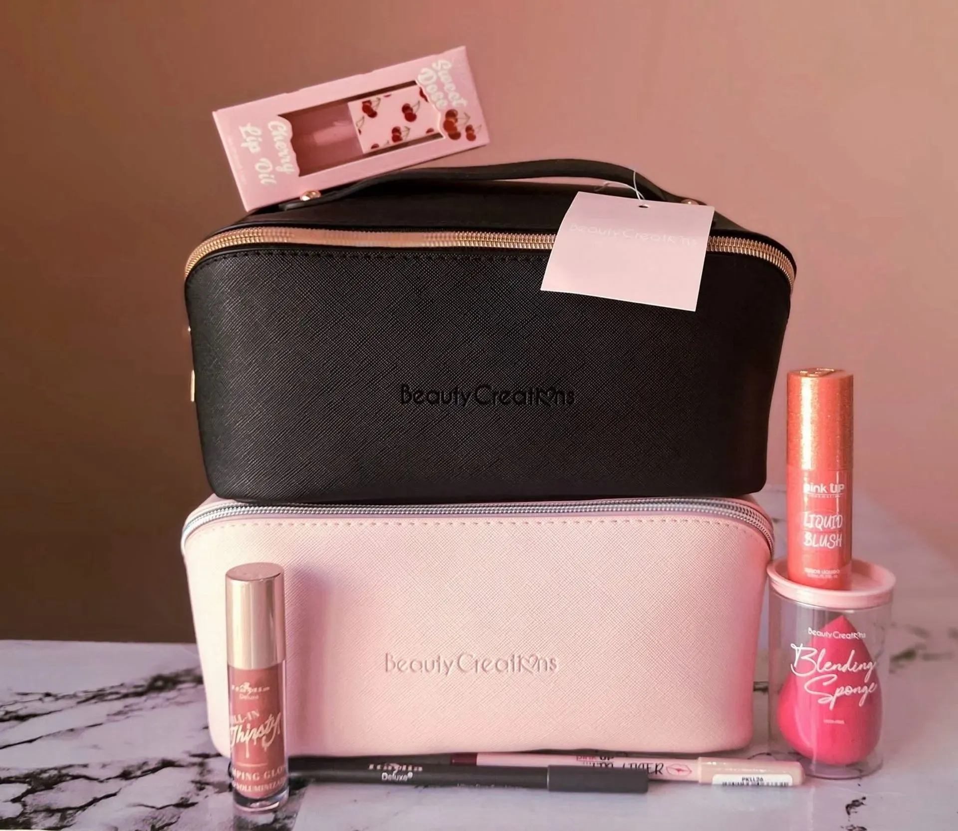 Mantén tu maquillaje, brochas y artículos de tocador organizados en esta amplia cosmetiquera, que incluye un zipper de apertura suave, varios compartimentos de almacenamiento y un diseño plano que permite que se abra completamente para mostrar todos tus productos.