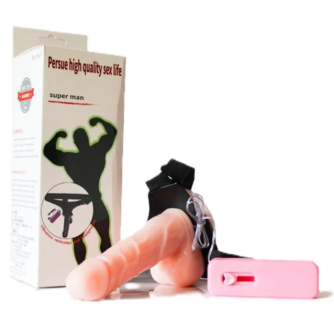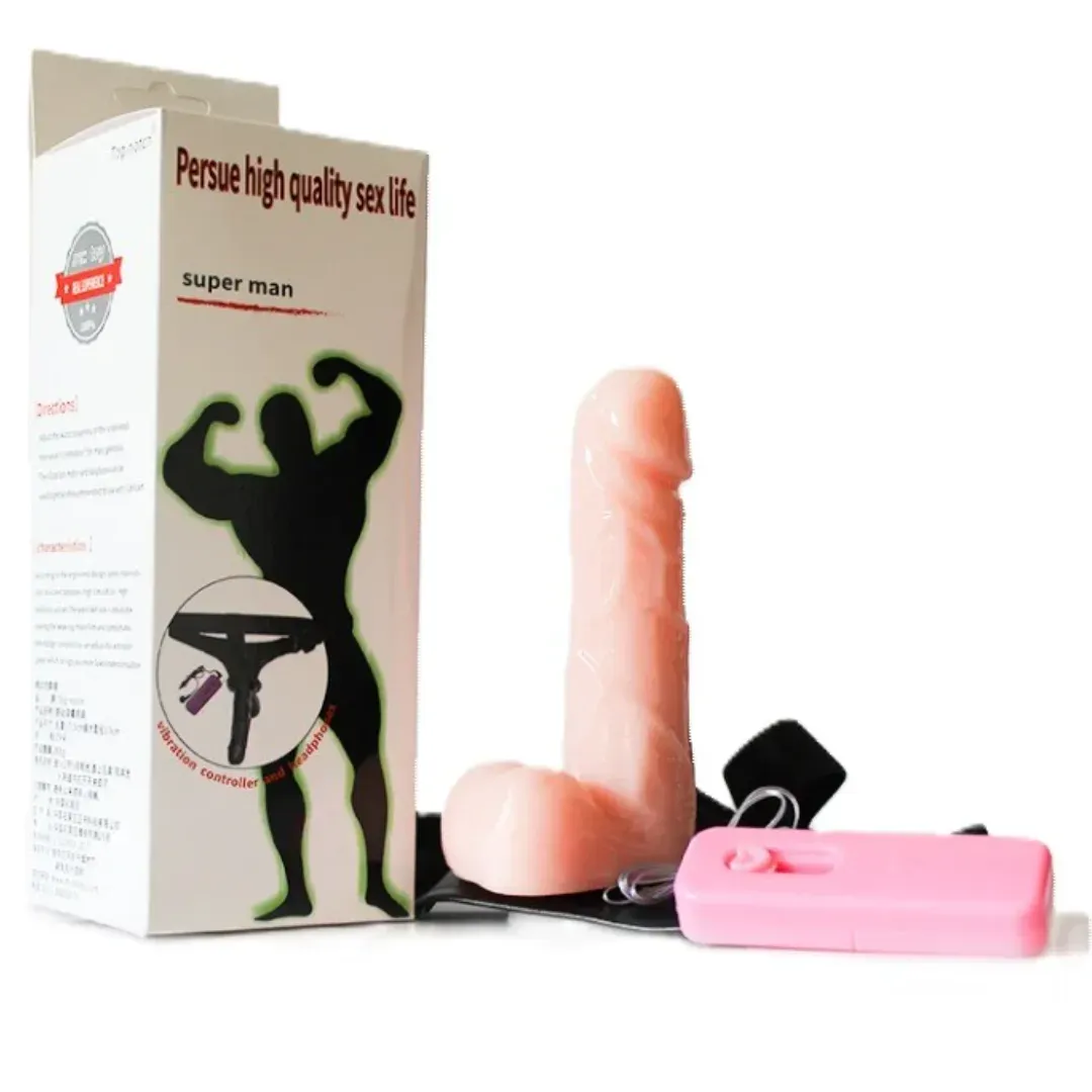 Espectacular arnés con vibración y sonidos que simulan los gemidos de una mujer.