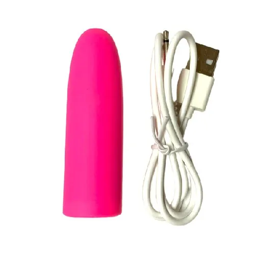Bala vibradora en silicona médica Velocidades: 10 Carga: USB , plug Voltaje: 5V Medida: 7,5 cm largo x 2,2 diámetro Colores: surtidos (negro, fucsia,rosa, morado) Resistente al agua (la bala, el control no)