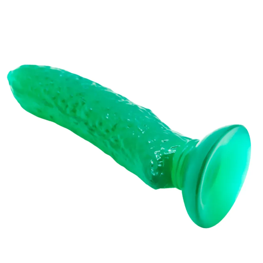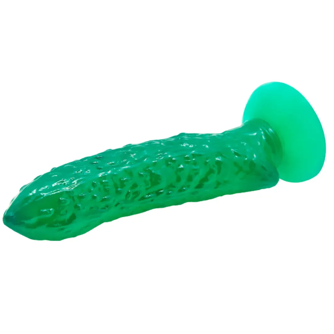 Si quieres algo diferente esta es la oportunidad de estimular tu placer con este consolador en forma de pepino con base de succión con nódulos estimulantes que elevan tu placer y curvatura para estimular tu punto g.