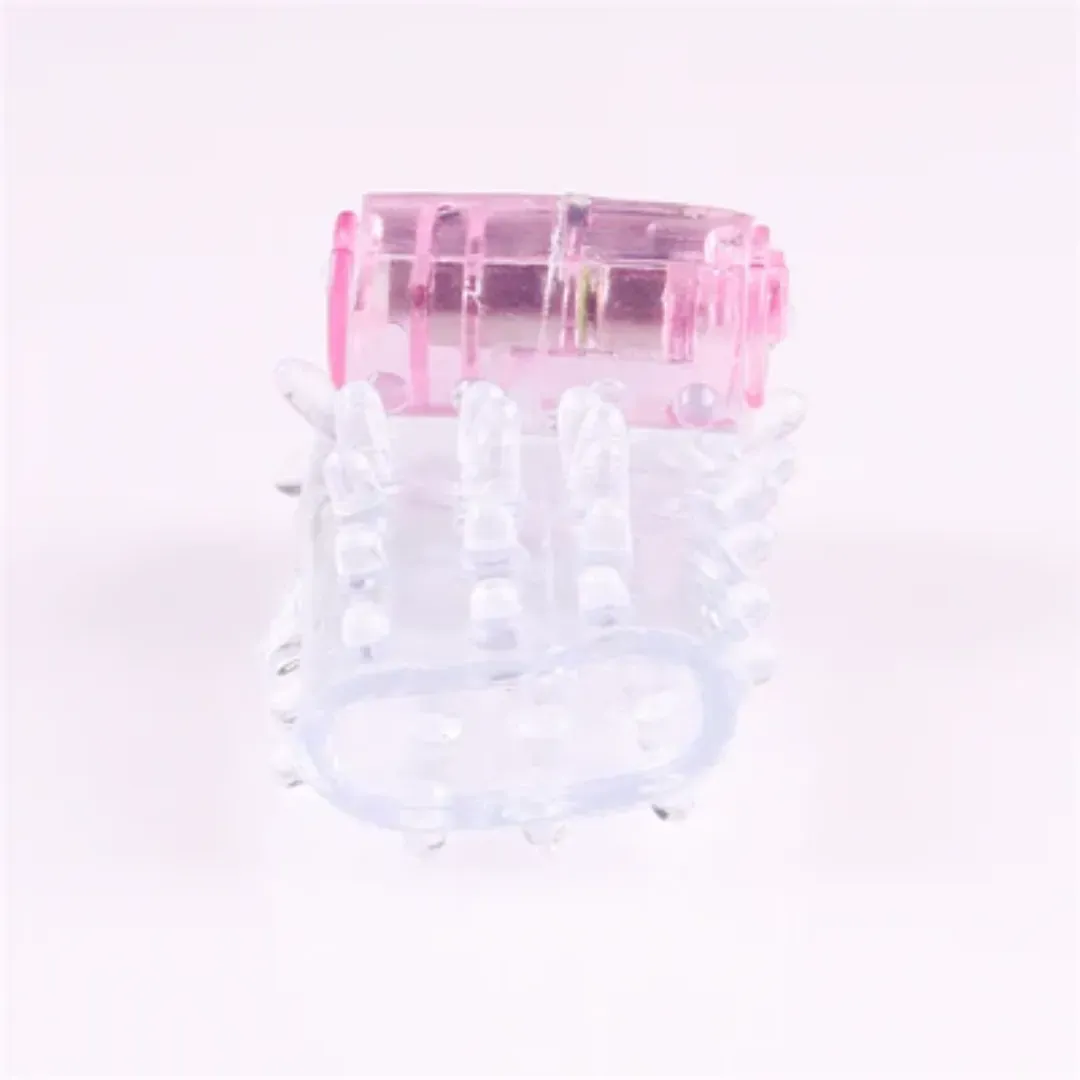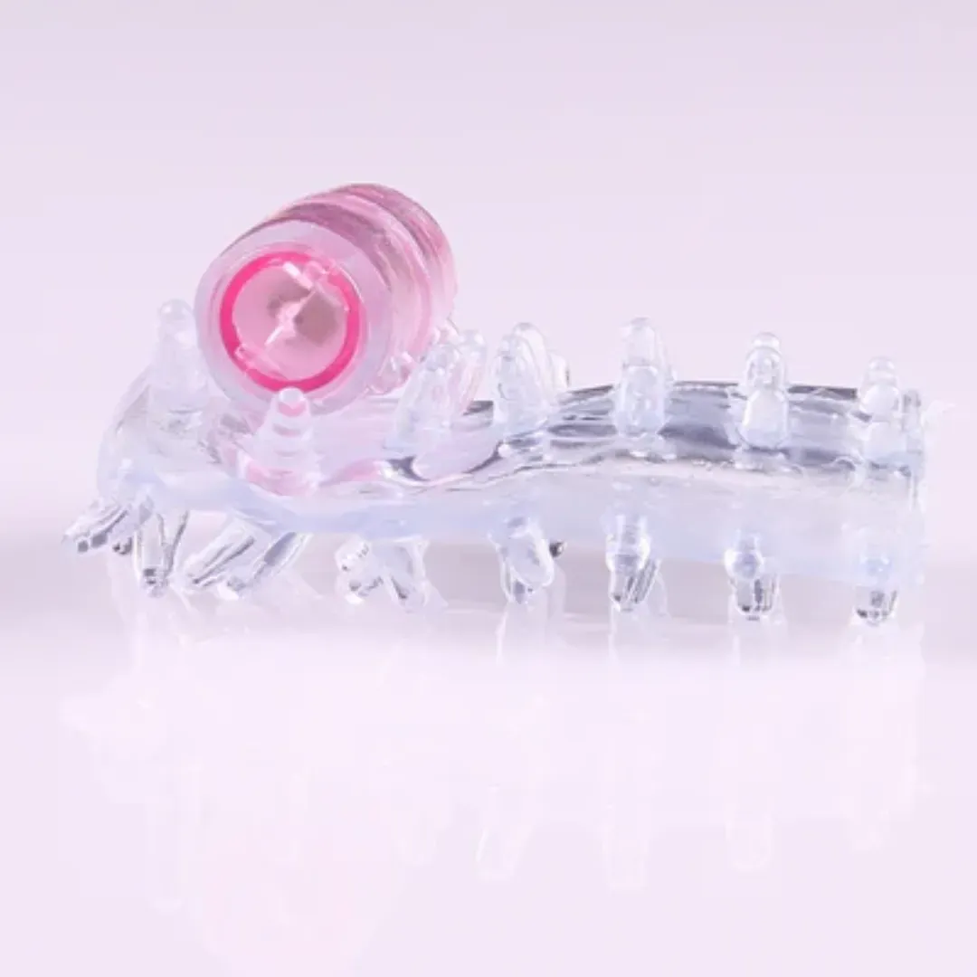 Semi funda anillo de silicona con textura, mejora la erección e incluye vibrador que estimula el clítoris.