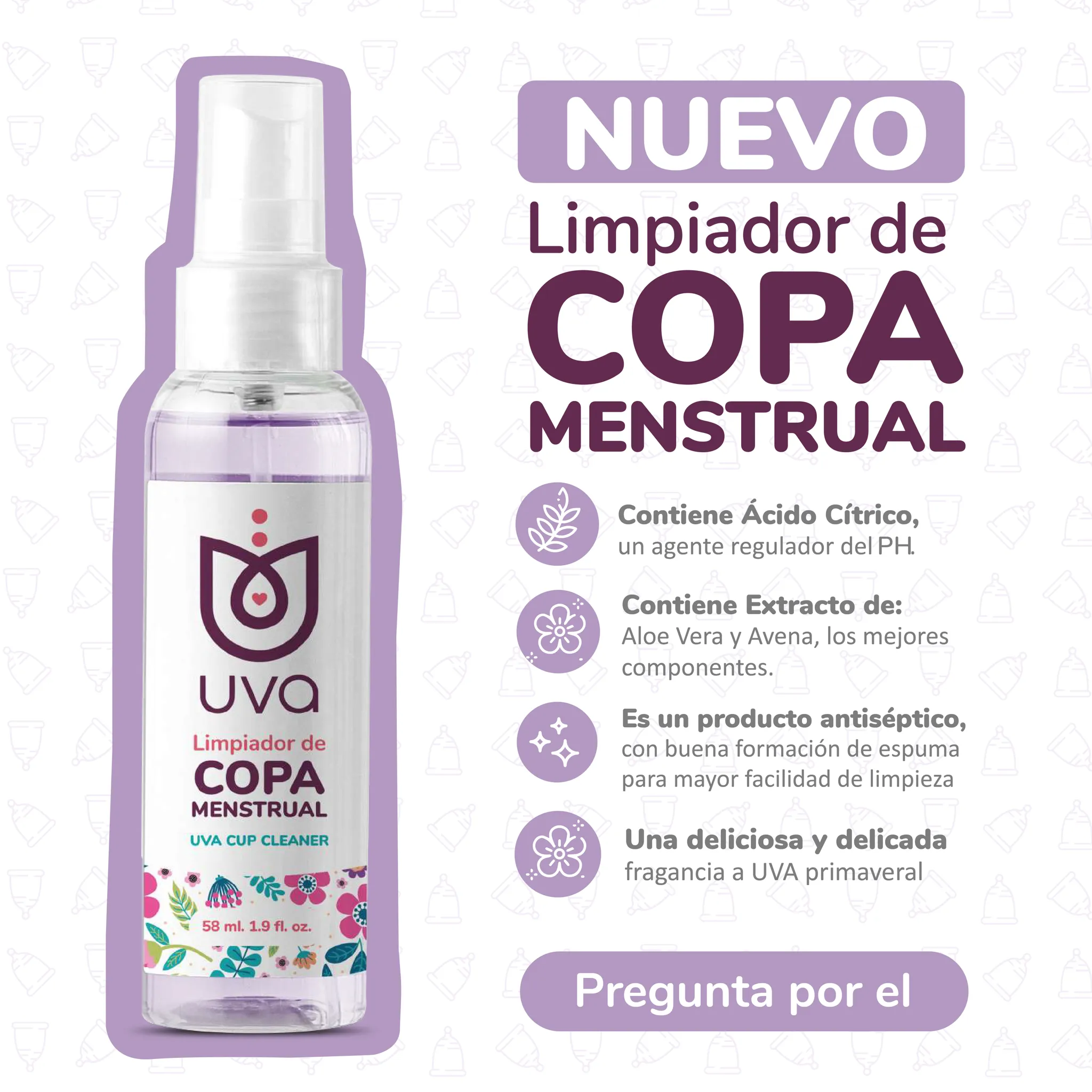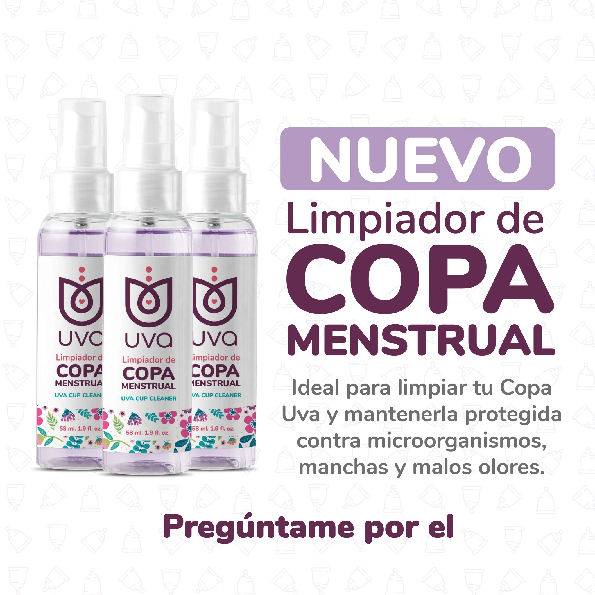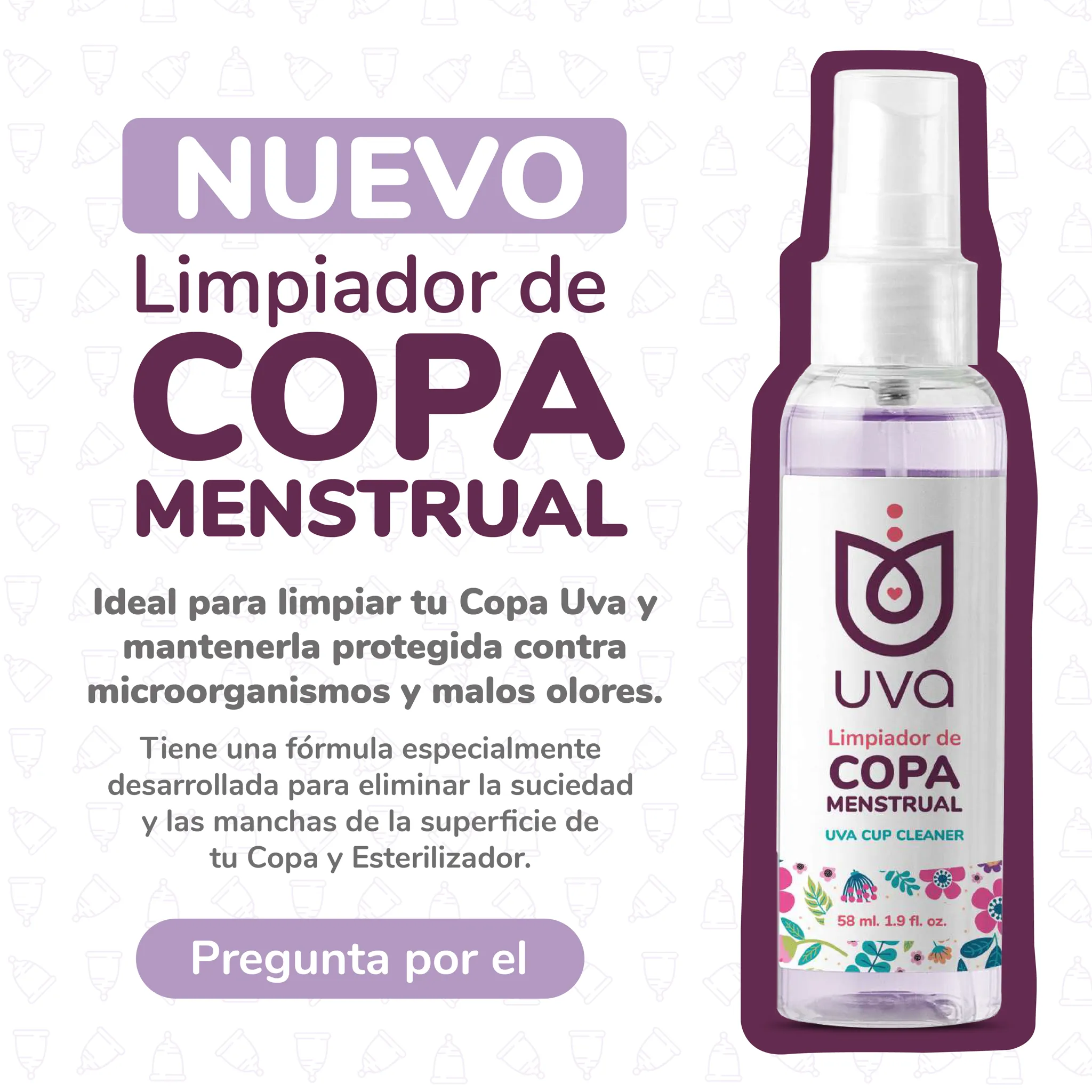 Mantenga desinfectada la Copa Menstrual con el Limpiador de Copa Menstrual UVA