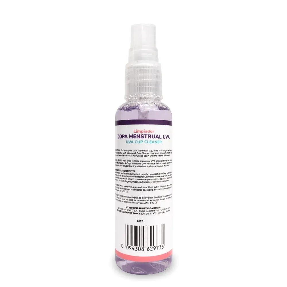 El Limpiador de Copa Menstrual UVA es un producto diseñado para proteger la Copa Menstrual UVA contra microorganismos y malos olores.