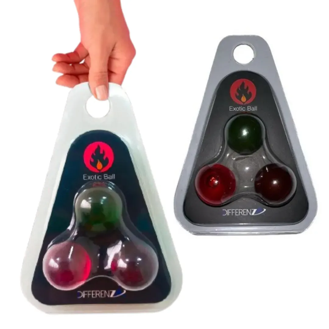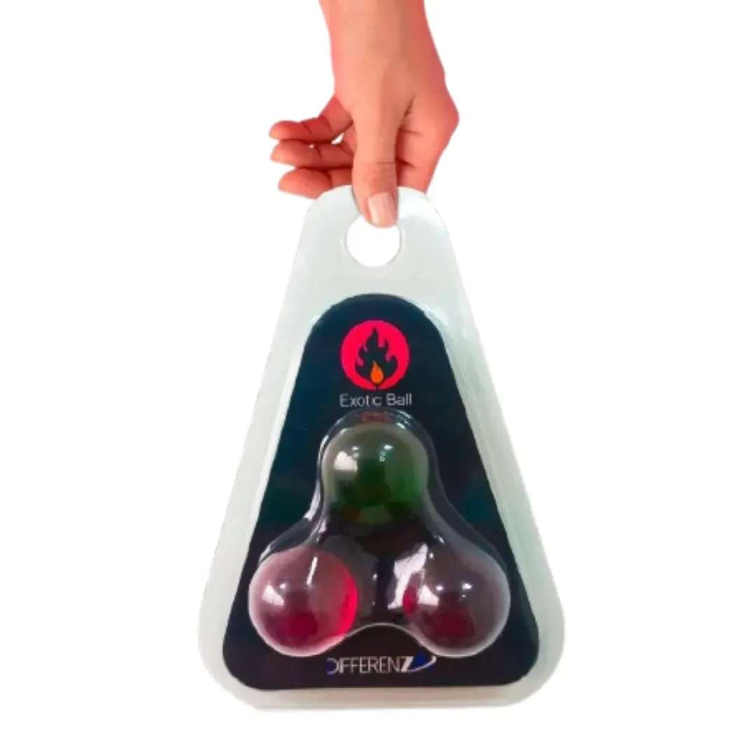Exotic Ball son Cápsulas esféricas de gelatina blanda rellenas de un aceite afrodisíaco, (aceite vegetal con diferentes sabores).