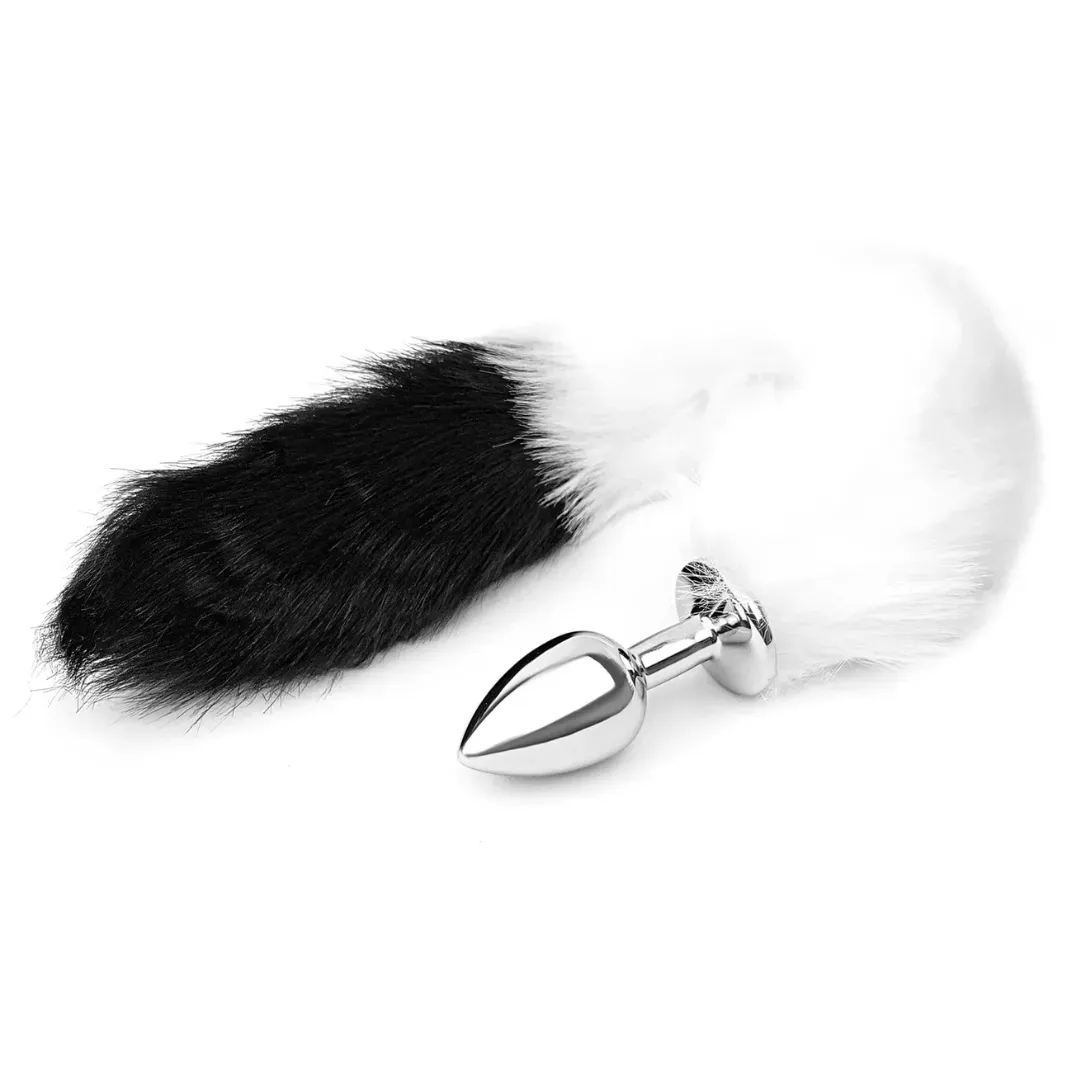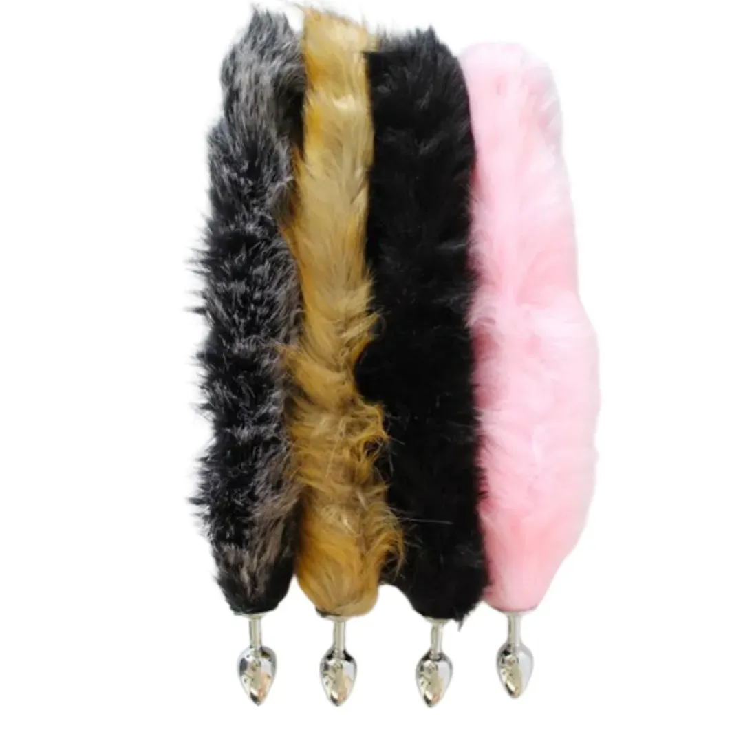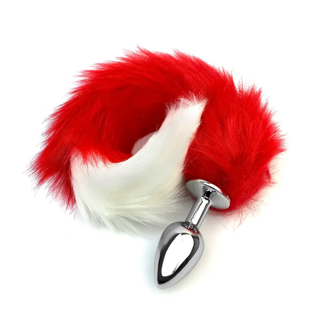 Cola de zorro sintética, con plug anal metálico incorporado, para juegos de rol y fetichistas.