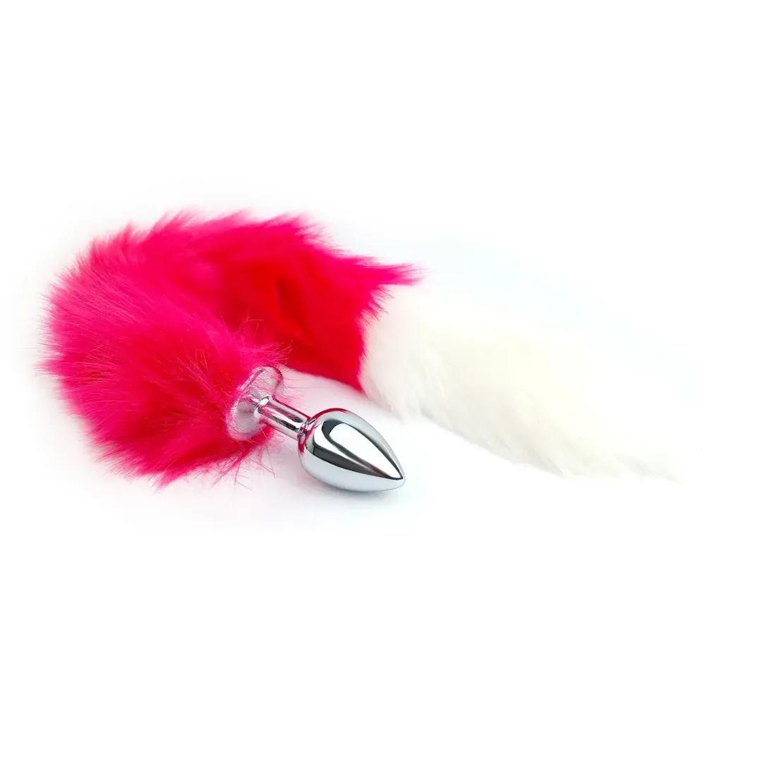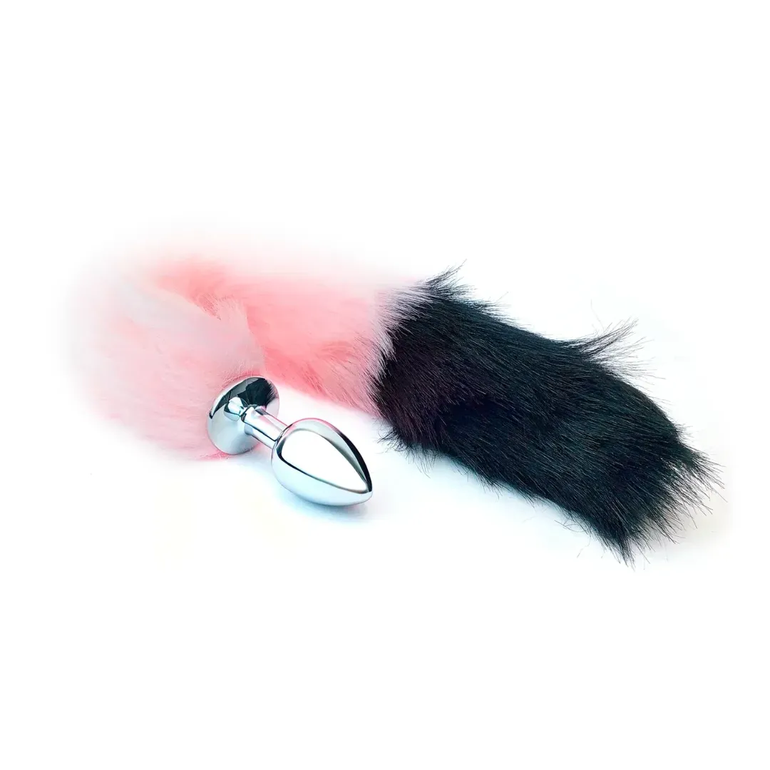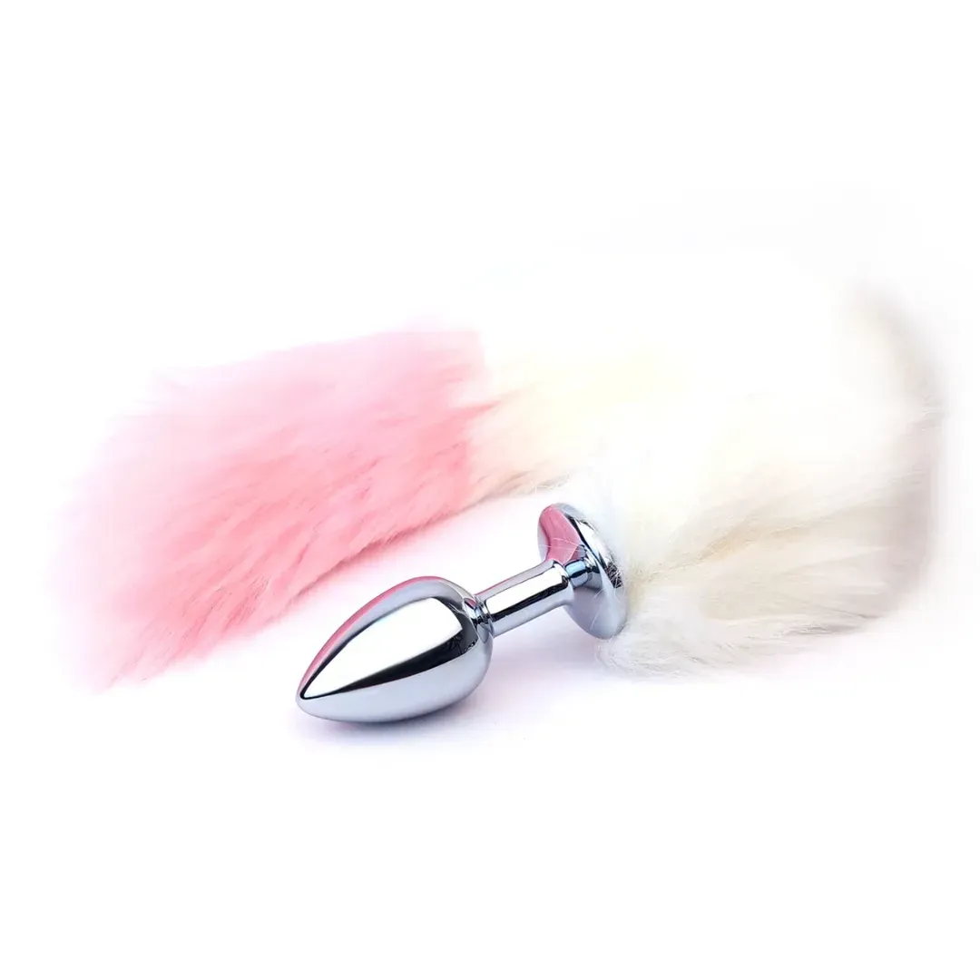 Cola de zorro sintética, con plug anal metálico incorporado, para juegos de rol y fetichistas.