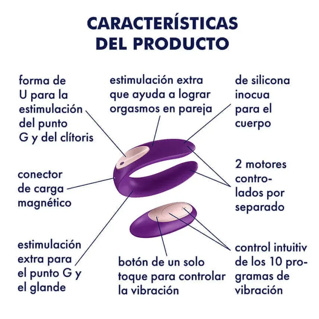 El Satisfyer Double Plus Remote está diseñado para estimular el clítoris y la vagina durante la penetración, esto hace que el Satisfyer Double Plus Remote estimule dos zonas erógenas femeninas de forma simultánea.
