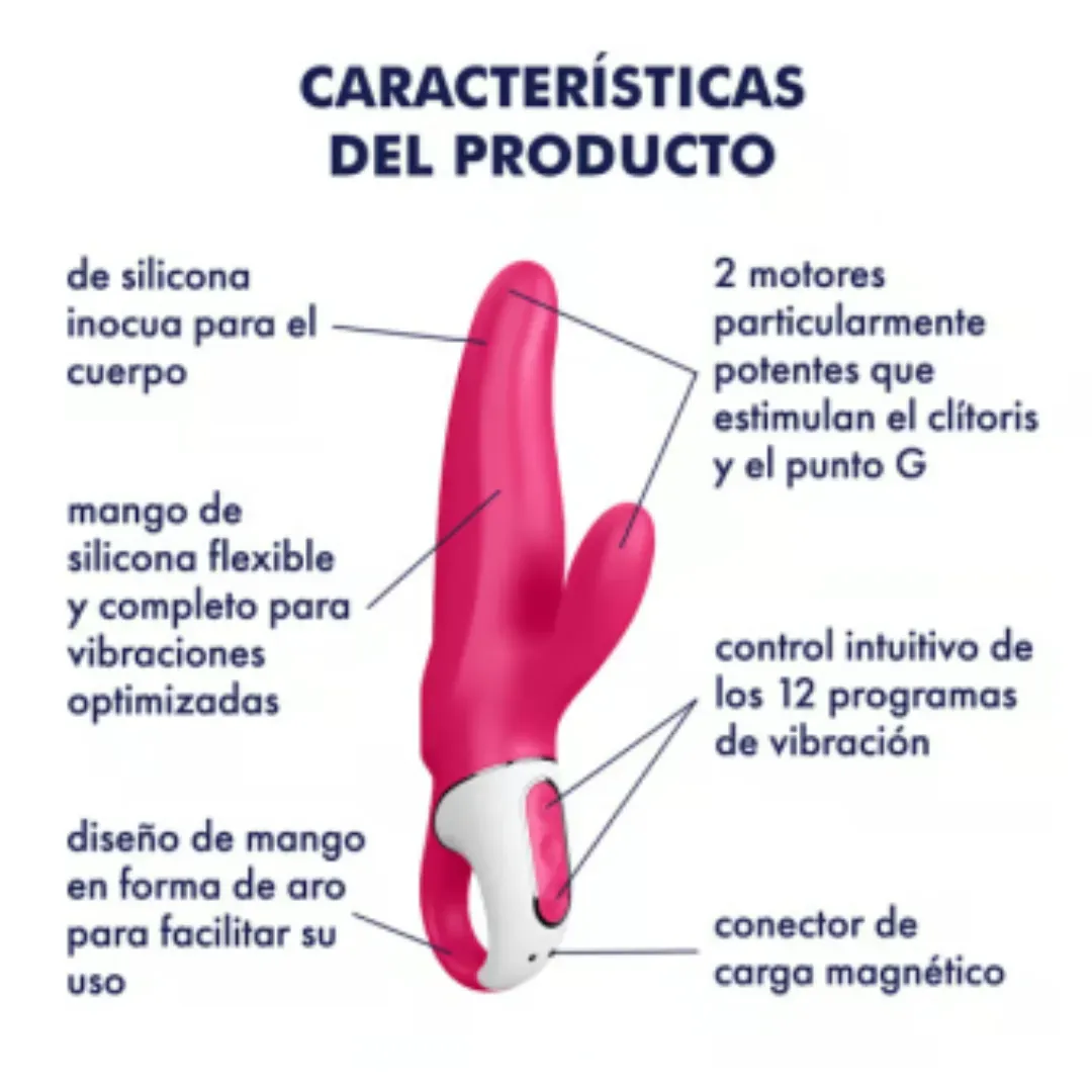 Los 12 sensuales modos de vibración llegan a todos tus puntos favoritos con una potencia impresionante y estimulan tanto la vagina como el clítoris: y es que Mr. Rabbit está equipado con 2 potentes motores. Si quieres orgasmos intensos, confía en Mr. Rabbit, este es un conejo muy versado, por no dec...