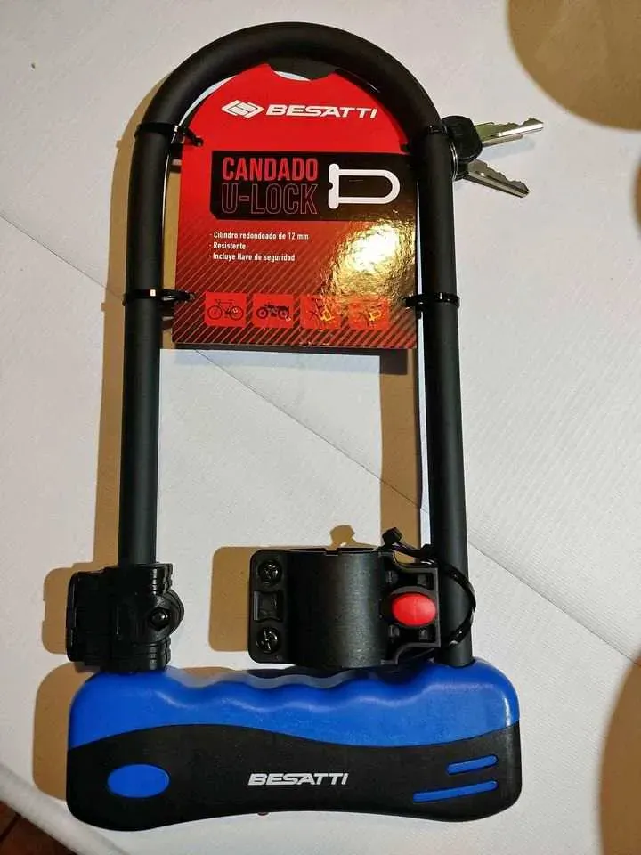 CANDADO DE SEGURIDAD PARA BICICLETA O MOTO U-LOCK BESSATTI 165X320MM