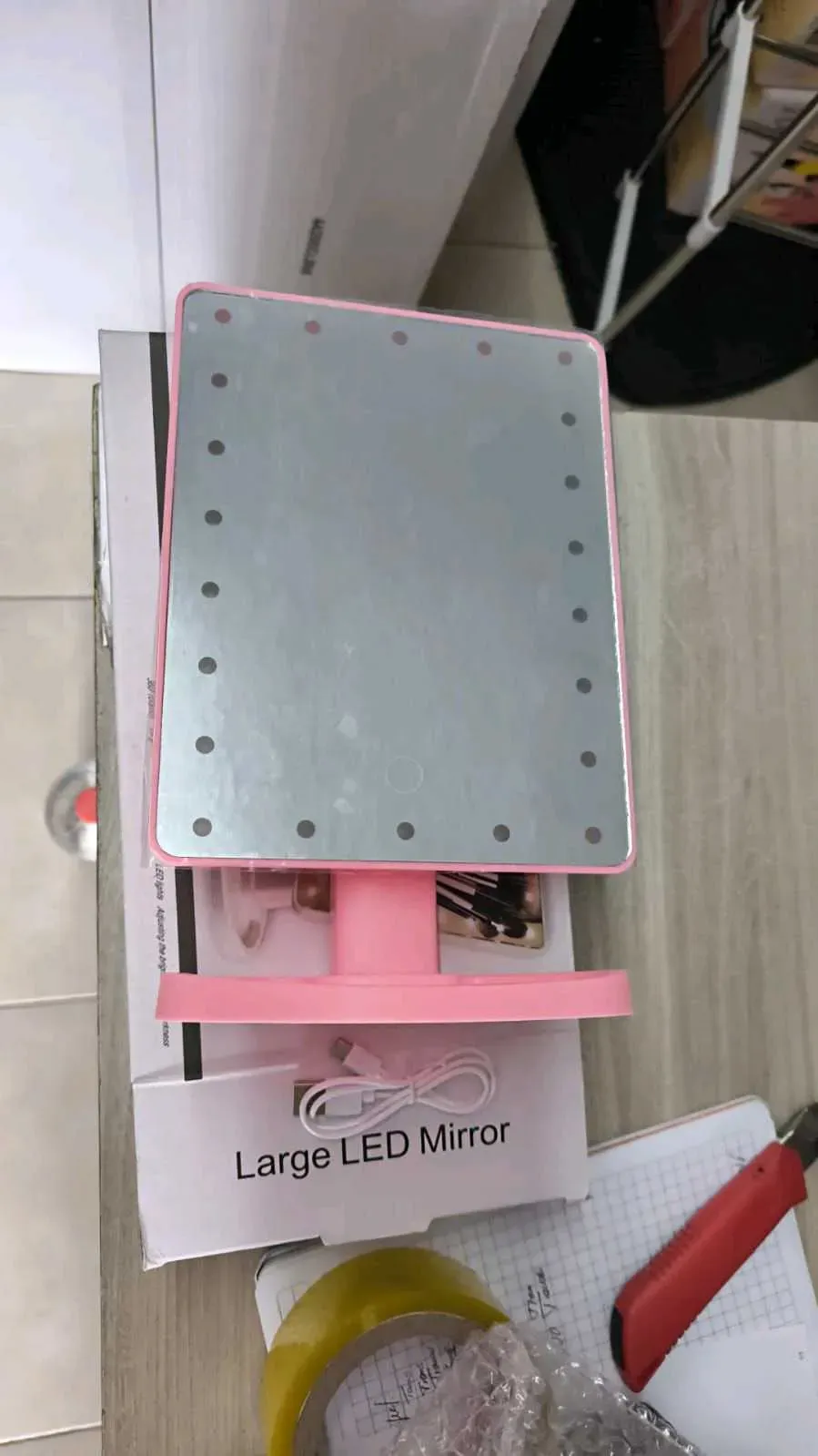 Espejo de maquillaje cuadrado con 16 luces led para tocador