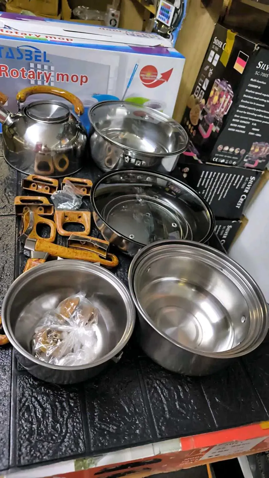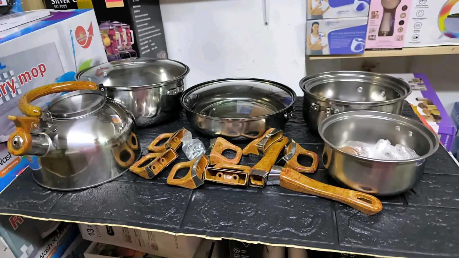 JUEGO DE 12 PIEZAS OLLAS CROMADAS +TETERA 1.5L +SARTEN* ⚜️ SET DE 12 PIEZAS DE BATERÍA Y UTENSILIOS DE COCINA 🍱🥘
