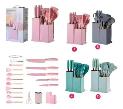 JUEGO DE UTENSILIOS DE COCINA DE SILICONA TASBEL + ORGANIZADOR