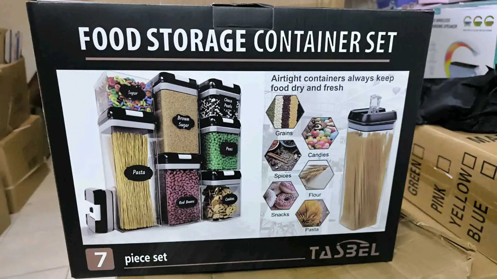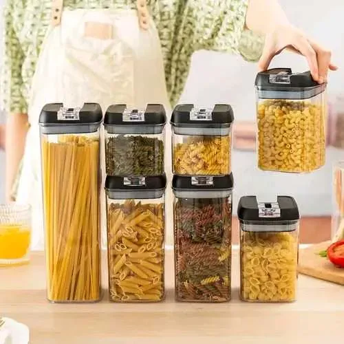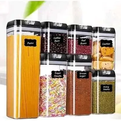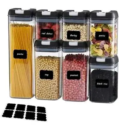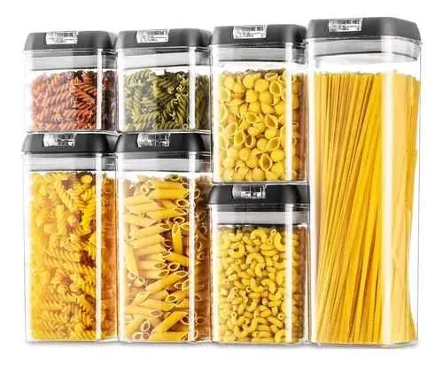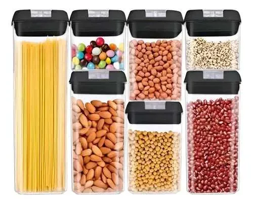 Set de lujo 7 recipientes de cereales de diferentes tamaños. no tendrás que preocuparte por atascar tus comestibles. El paquete incluye 1 recipiente grande de (1.9L) 2 recipientes altos (1,2 L), 2 recipientes medianos (0,8 L), 2 recipientes pequeños (0,5 l). Ideal para almacenar todo desde harina,...