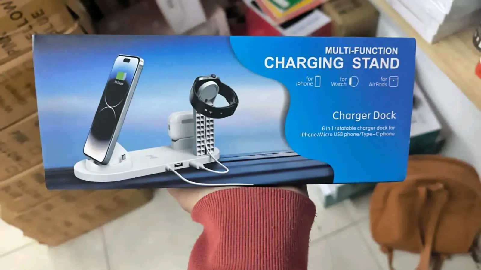 SOPORTE CON BASE DE CARGA GIRATORIA 4 EN 1 PARA CELULAR Y RELOJ