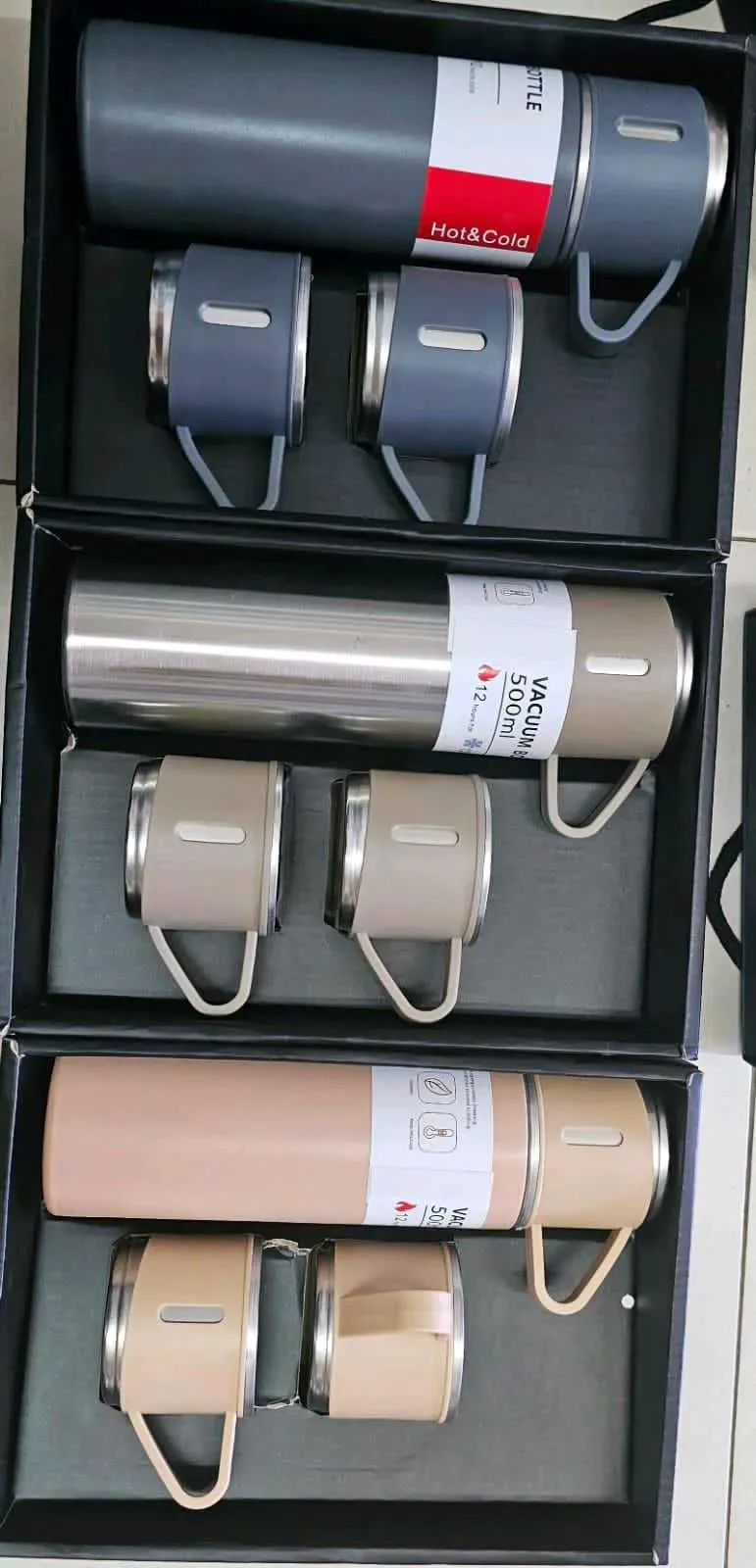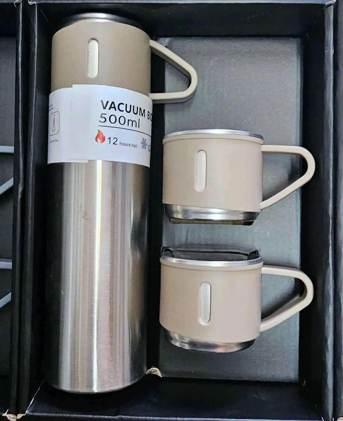 TERMO ELEGANTE EN ACERO INOXIDABLE 500ML + 3 TAZAS