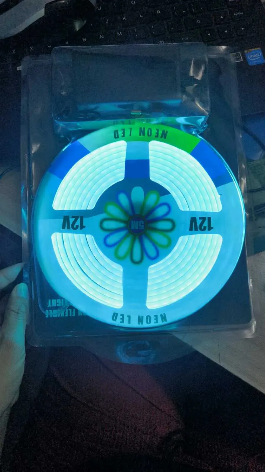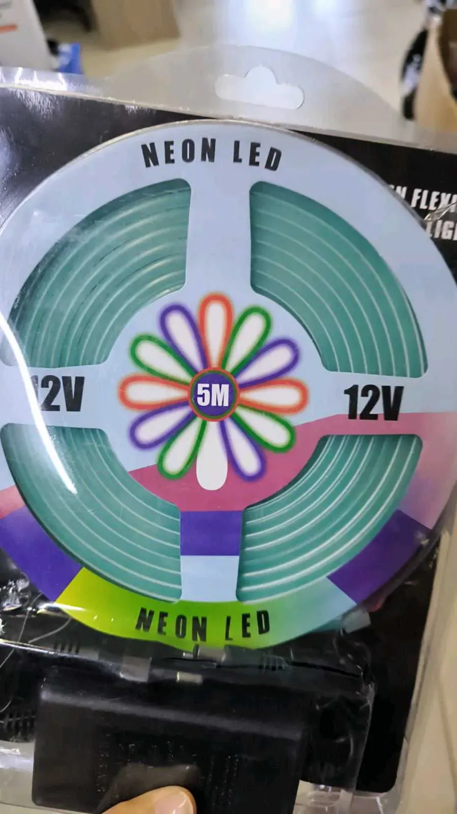 TIRA DE LUZ LED NEON FLEXIBLE TURQUESA DE 5 METROS CON TRANSFORMADOR 12V