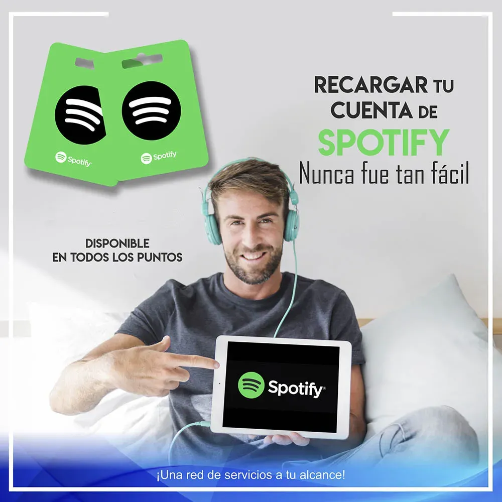 plataforma de streaming donde puedes escuchar miles de playlist puedes adquirir cuenta de 1 y 3 meses en cualquiera de nuestros puntos afiliados a nivel nacional una ves realizada la recarga en un lapso de 15 a 30 minutos recibiras tu cuenta para disfrutar