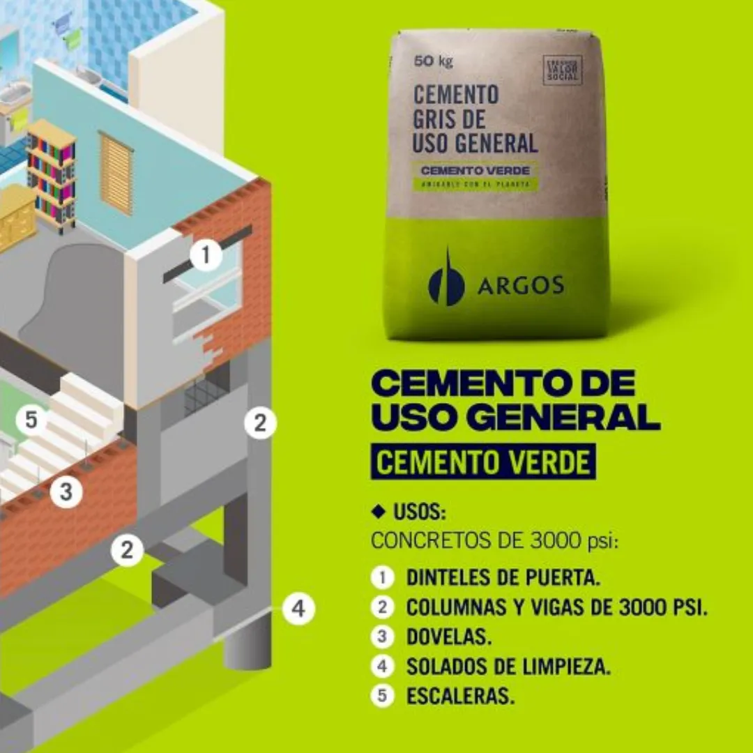 CEMENTO x 50 kg/ GRIS UG x 100 UND. Cemento versátil para la fabricación de morteros, lechadas y concretos en construcción. Cumple con la Norma Técnica Colombiana NTC 121 (Tipo UG). Almacenar en lugar seco y consumir inmediatamente tras abrir el saco.