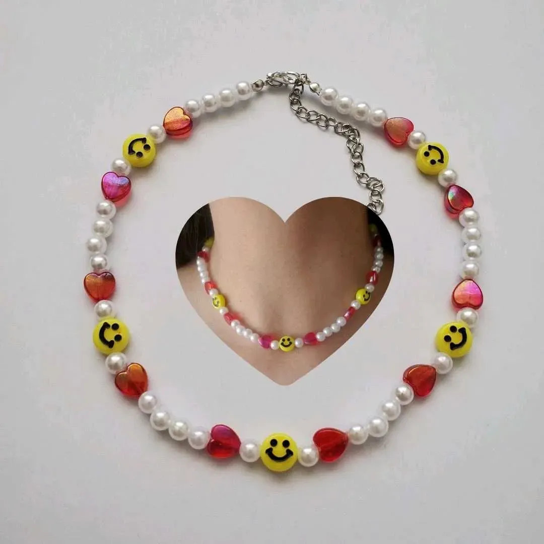 🎀Precioso choker inspirado en caritas happys con corazones, contiene perlas blancas dijes de corazones y caritas felices creando un accesorio único y realmente hermoso✨️