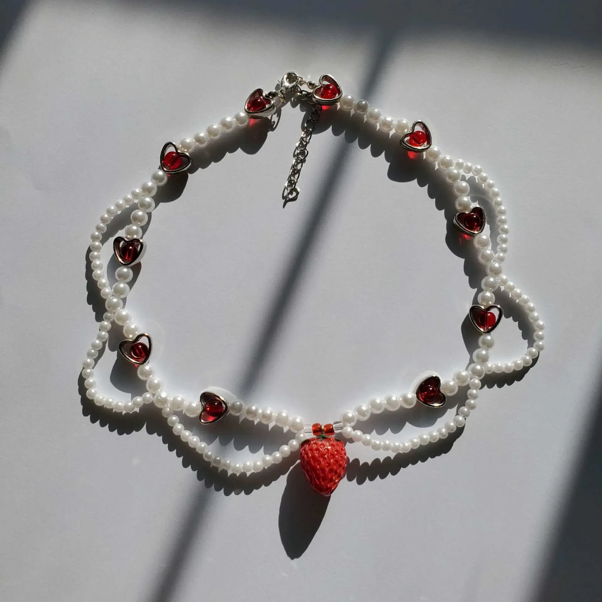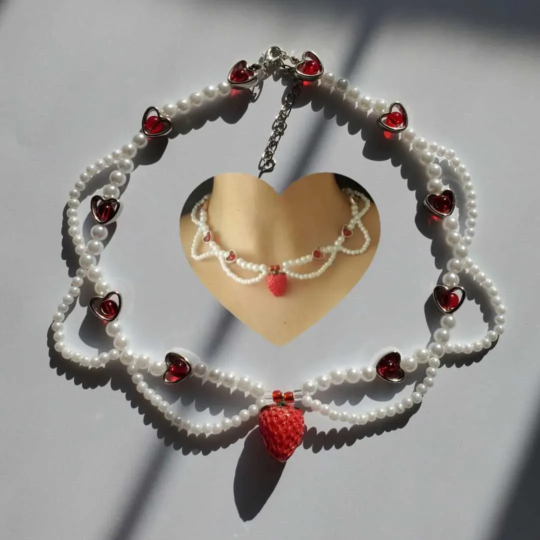 ✨️Precioso choker de frutilla 🍓 hecho con perlas blancas y dijes de corazon creando un accesorio único y realmente hermoso✨️
