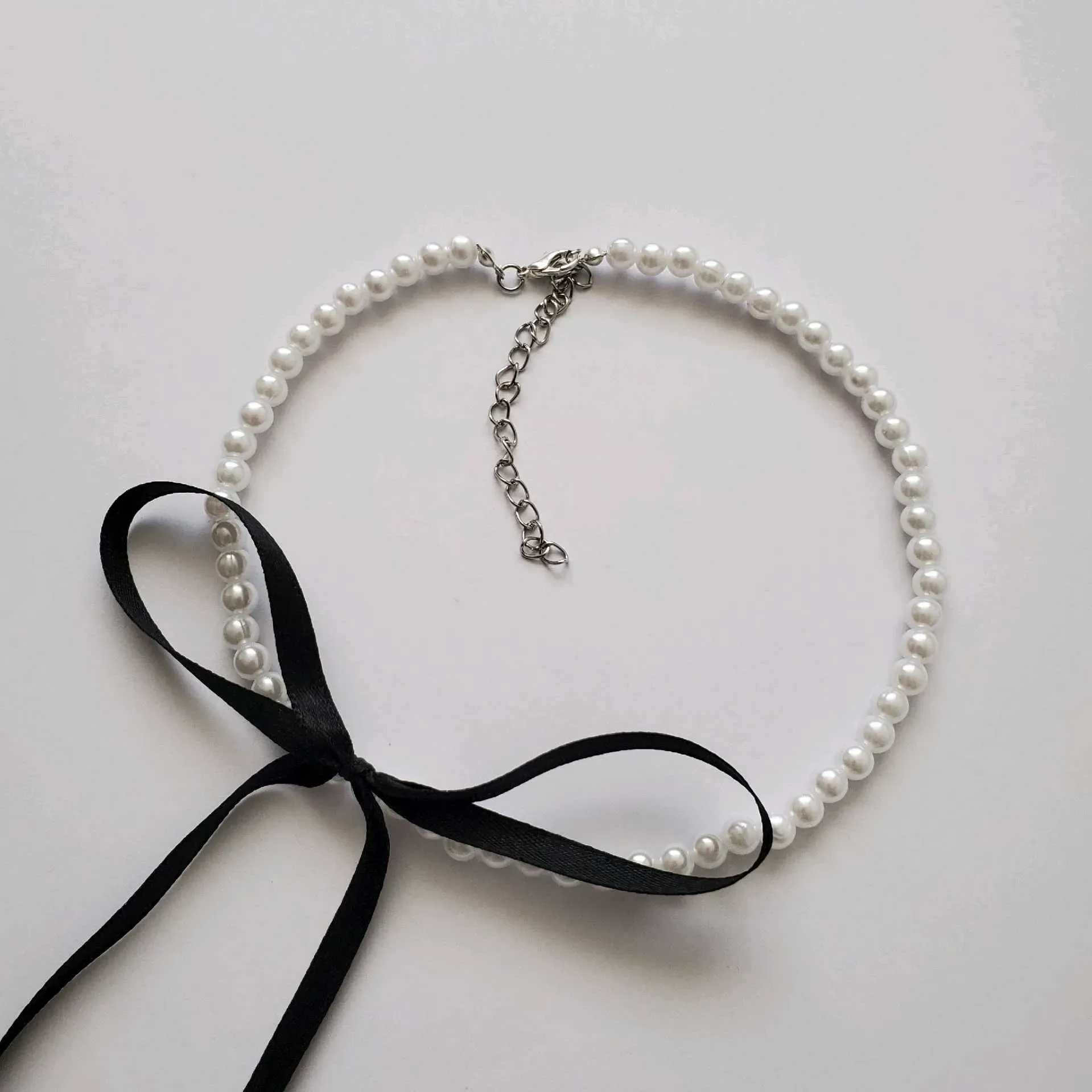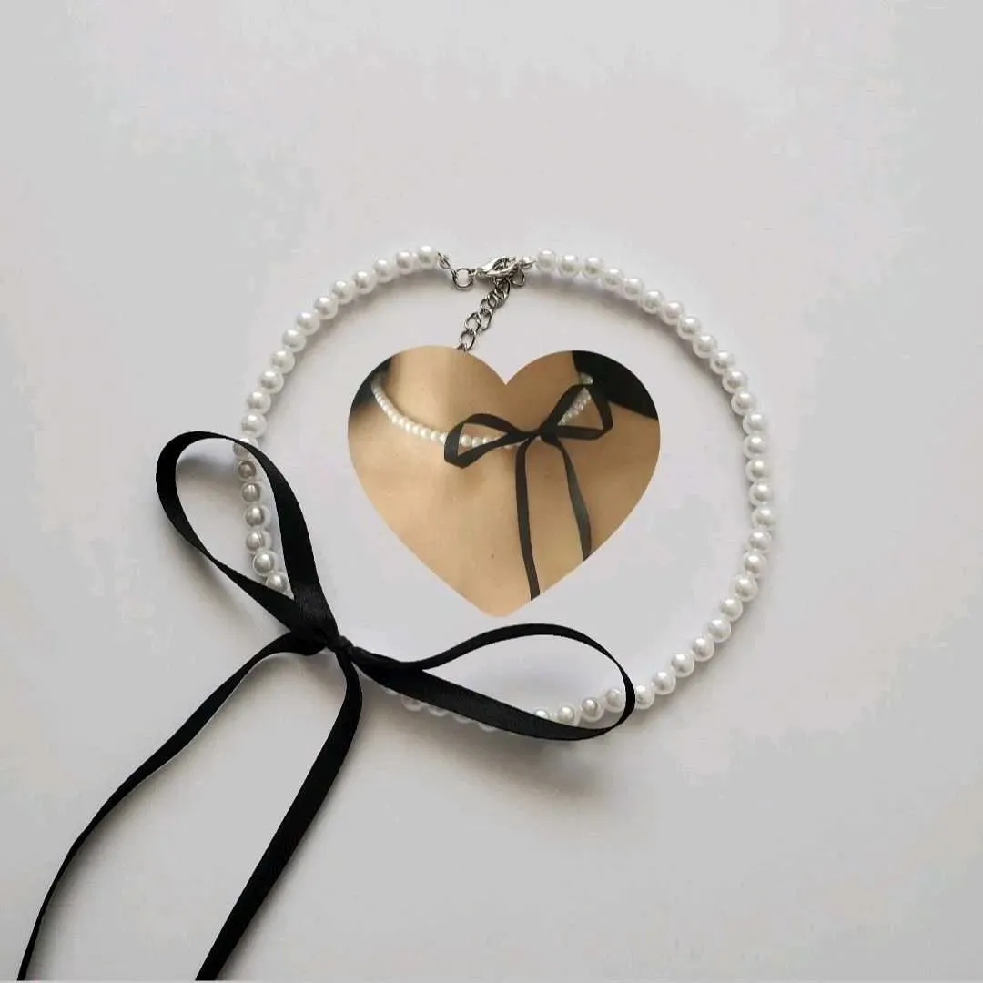 Precioso choker de lazo cambinado con perlas blancas, dando un estilo sutil, elegante y único💖