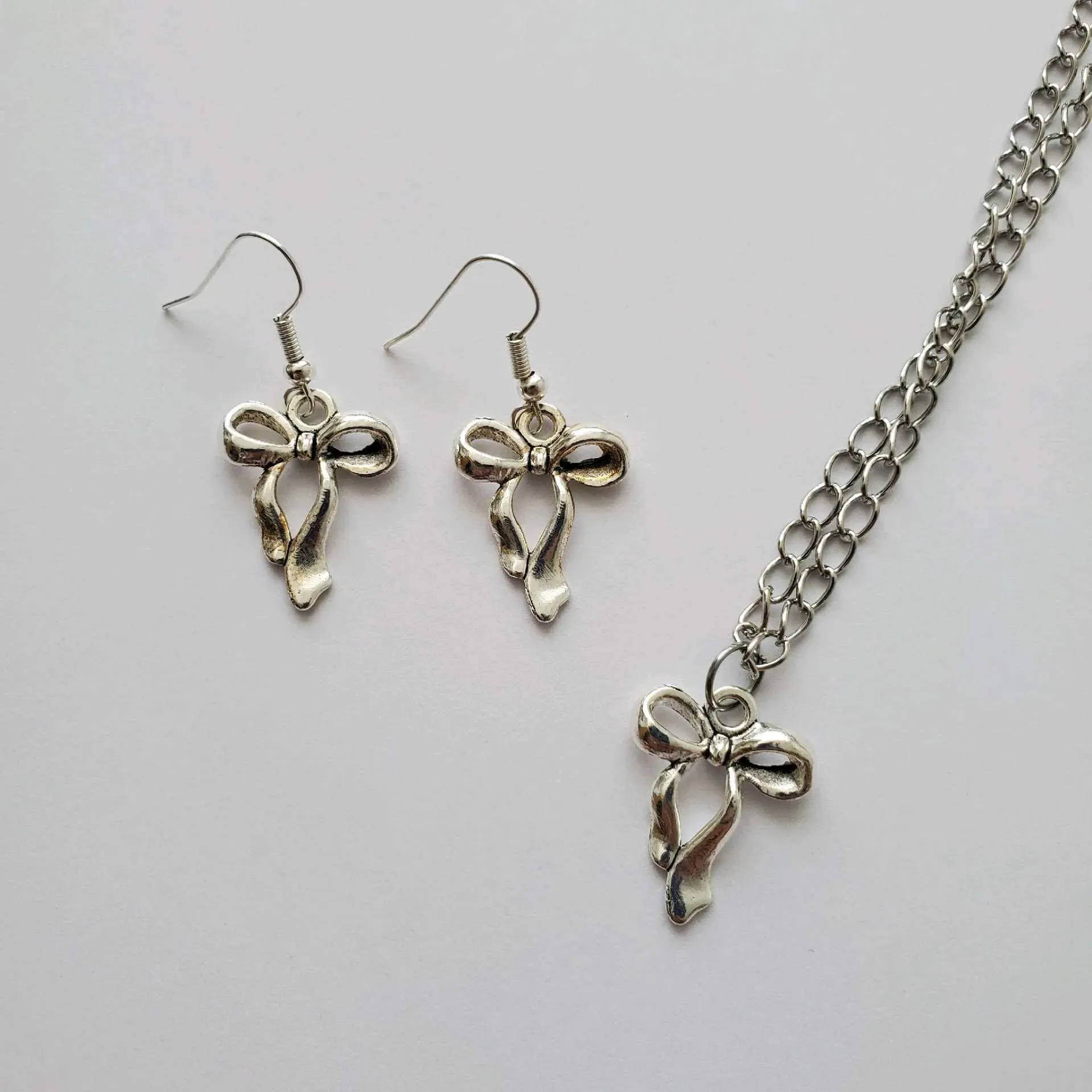 ✨️Precioso conjunto que contiene aritos y un choker de cadena con un dije de cinta creando un conjunto único y realmente hermoso💖