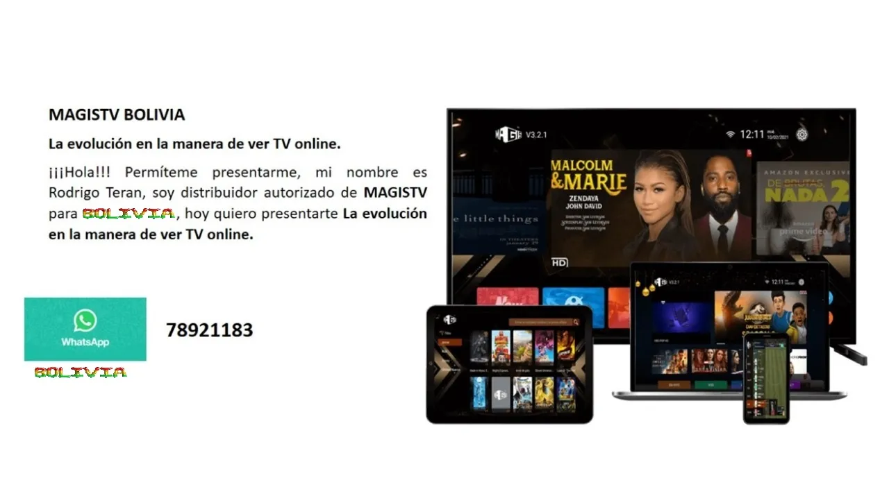 Servicio Oficial MAGISTV para toda Bolivia, excelentes PROMOCIONES, más de 5000 películas y series y más de 1200 canales de tv en vivo. Este servicio necesariamente necesita de un sistema Android para su funcionamiento, así que debe ser utilizado en Android TV, computadoras, tabletas y celulares. (S...