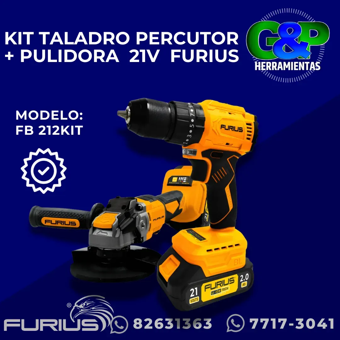 KIT TALADRO PERCUTOR INALAMBRICO + PULIDORA INALAMBRICA 21v