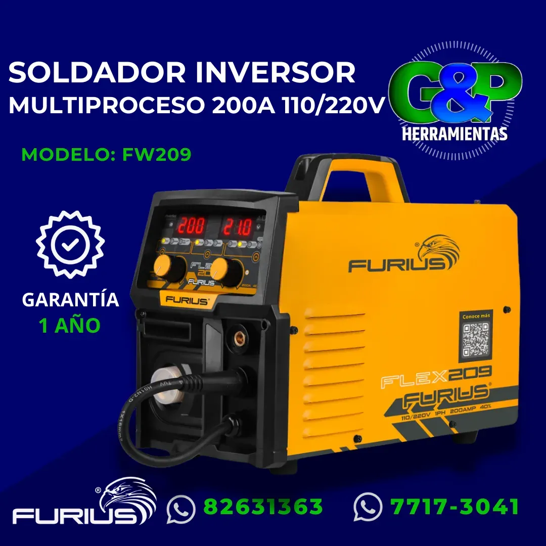 SOLDADOR INVERSOR MULTIPROCESOS MIG FURIUS 200A 110/220V